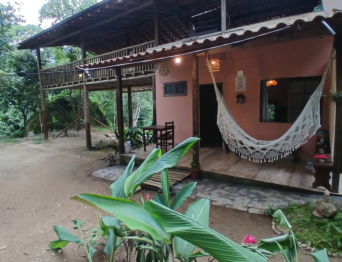 Lindo chalé em Paraty, em plena mata atlântica. Excelente para quem busca uma experiência única e uma verdadeira imersão na natureza. Deck com uma vista incrível, contato com animais silvestres, sossego total, local tranquilo, próximo a cachoeiras e a cerca de 25 min de carro do centro historico e das principais praias da região. Pequena piscina com água da nascente, ducha externa, churrasqueira fogo de chão, rede no deck, wifi e sinal 4G. São 9km do centro, sendo 3km de terra