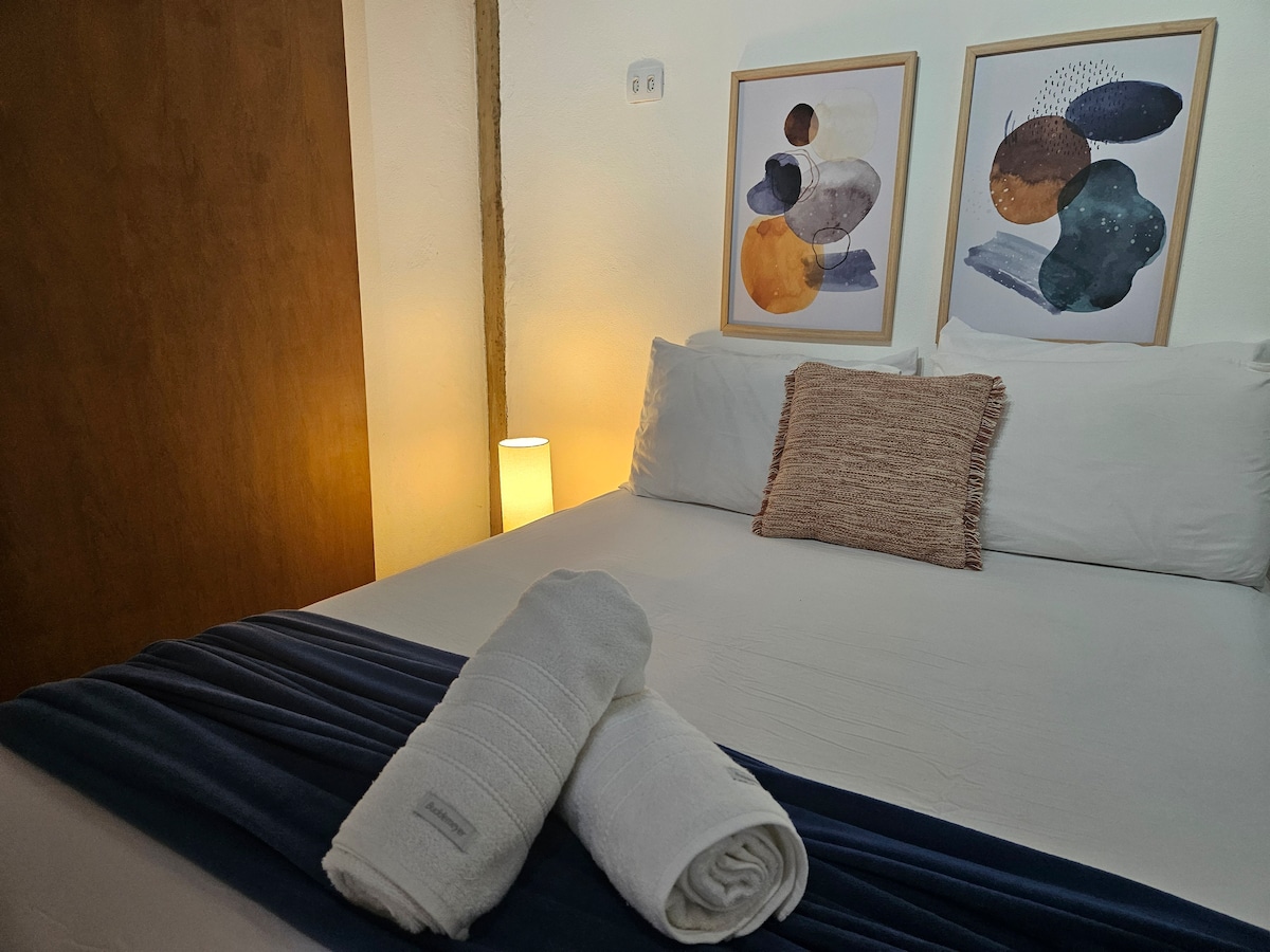 O quarto possue 1 cama de casal e uma beliche com colchões novos e confortáveis. Ambos os quartos proporcionam vistas incríveis da Mata Atlântica e do Mar, cercado de pura natureza, apenas 500m da mais fantástica cachoeira de Ubatuba, cachoeira do Prumirim. O quarto possui cozinha equipada com Microondas, geladeira, fogão, sanduicheiras, etc...... Possui televisão de Led com tv a cabo. O que eu mais adoro é a natureza e a visão privilegiada do lugar.