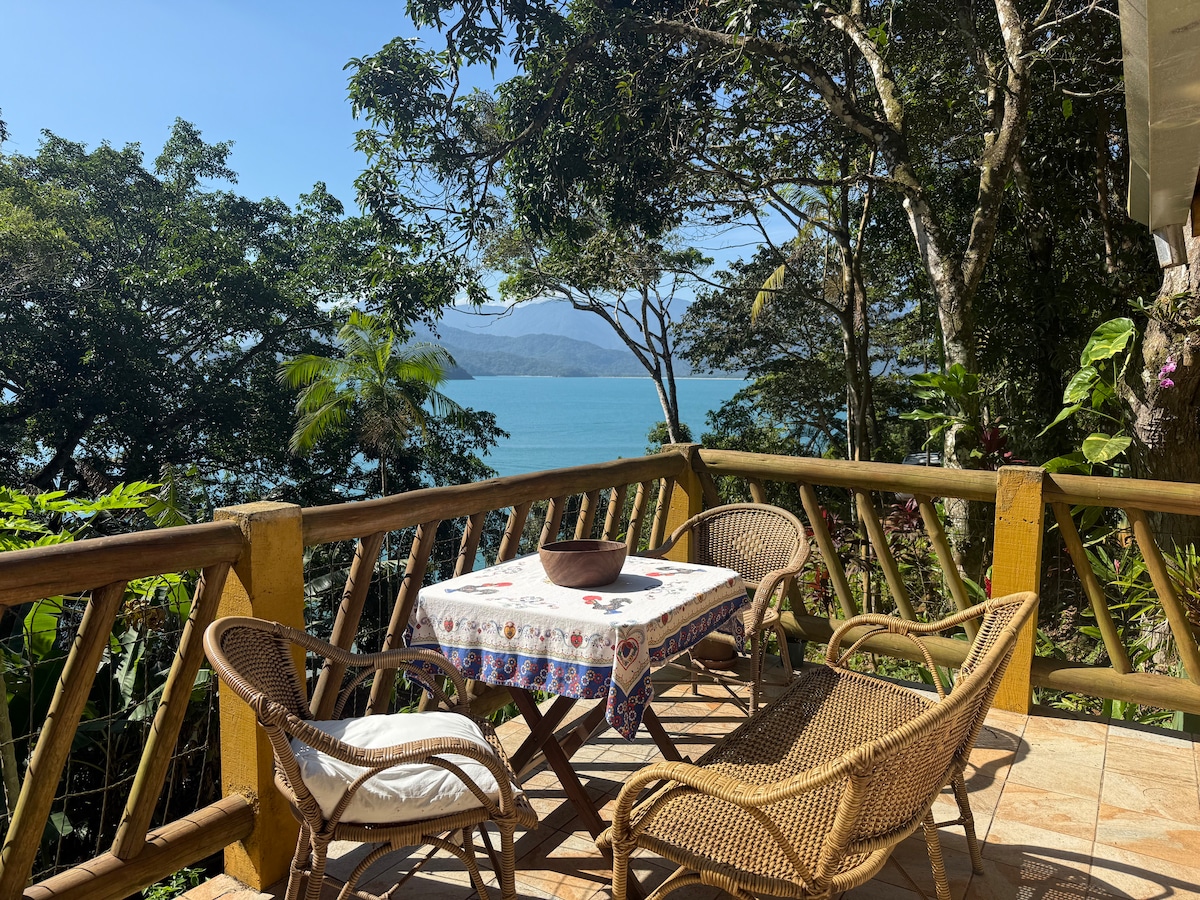 Casa de praia com vista maravilhosa a 18 passos da água. No encontro do mar e da mata atlântica. Recanto calmo e privado da baía e ao mesmo tempo a minutos a pé da praia de Almada. A chegada é um translado por barco ( 5 min) . Uma chegada maravilhosa apropriada para o local. Também é possível chegar à 150m com veiculo 4x4 ( não tão romântico). Pela trilha, (20 min) da praia de Almada, você chega nos restaurantes. Chegada somente durante o dia!