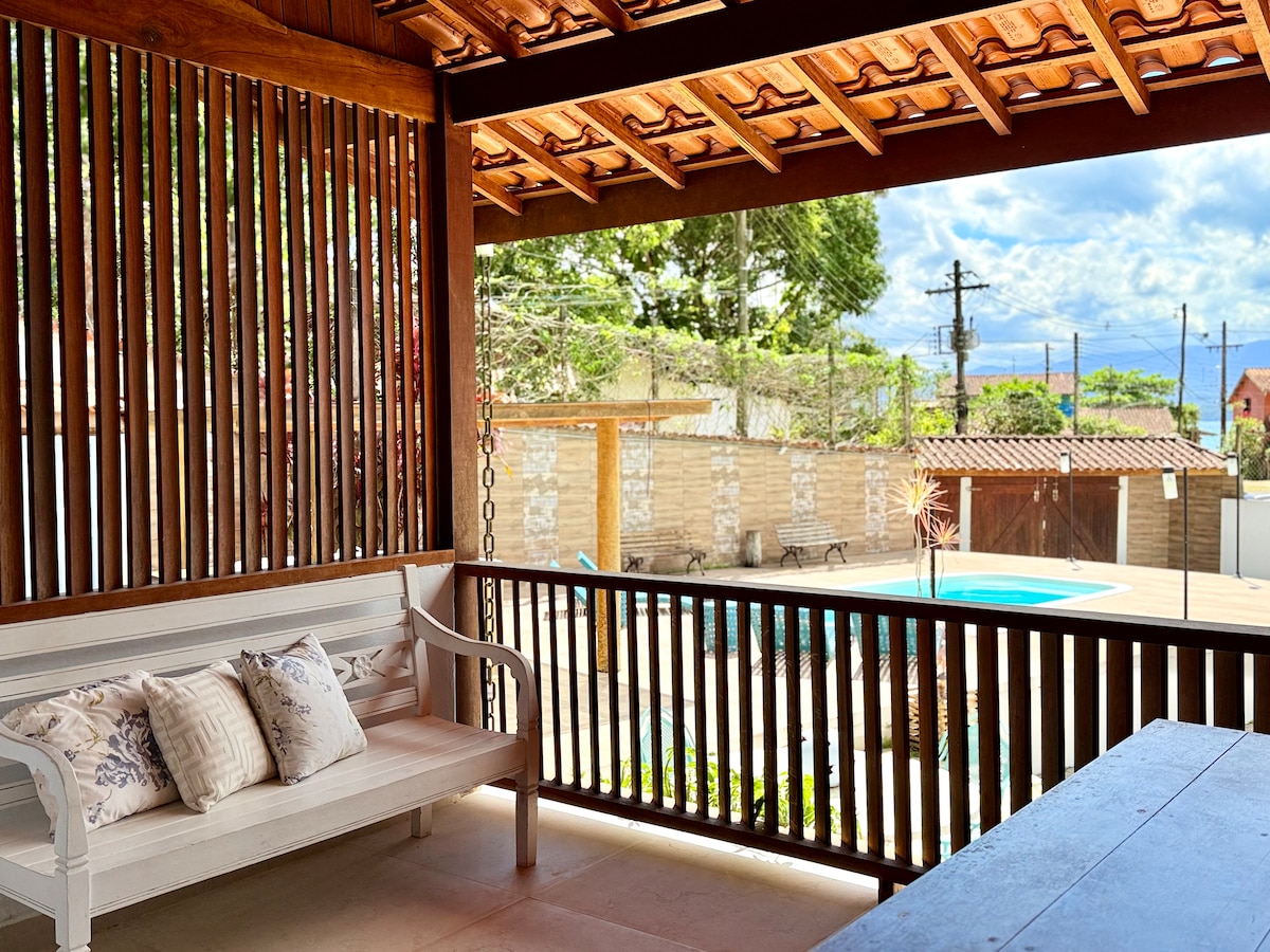 Welcome to Brisa Ubatuba! Our charming rental house in Praia Dura offers a relaxing getaway by the sea. We have 4 spacious suites with air conditioning and black out curtains. , Enjoy the stunning ocean view and our private pool. Fully equipped kitchen, 24-hour security, and proximity to Saco da Ribeira marina and beautiful beaches like Praia Vermelha do Sul and Fortaleza. Book now for an unforgettable stay!