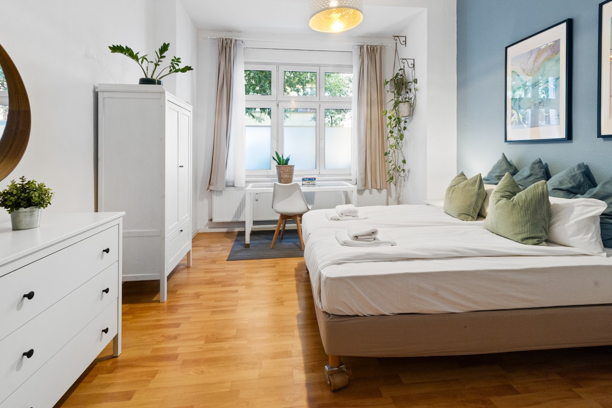 Warm & quiet 40sqm apartment with private entrance in a Bauhaus-style townhouse. 🌡️ Underfloor heating fills the space with gentle warmth. Soft daylight from the 4m sliding window sets a calm mood. Step outside to the cozy Terrace for your first morning coffee, feeling the crisp air and peaceful garden around you. Perfect for slow mornings & cozy evenings. ⚡ Very fast WiFi · 👥 2 guests · 🍳 fully equipt Kitchen · 🧺 Washing Machine