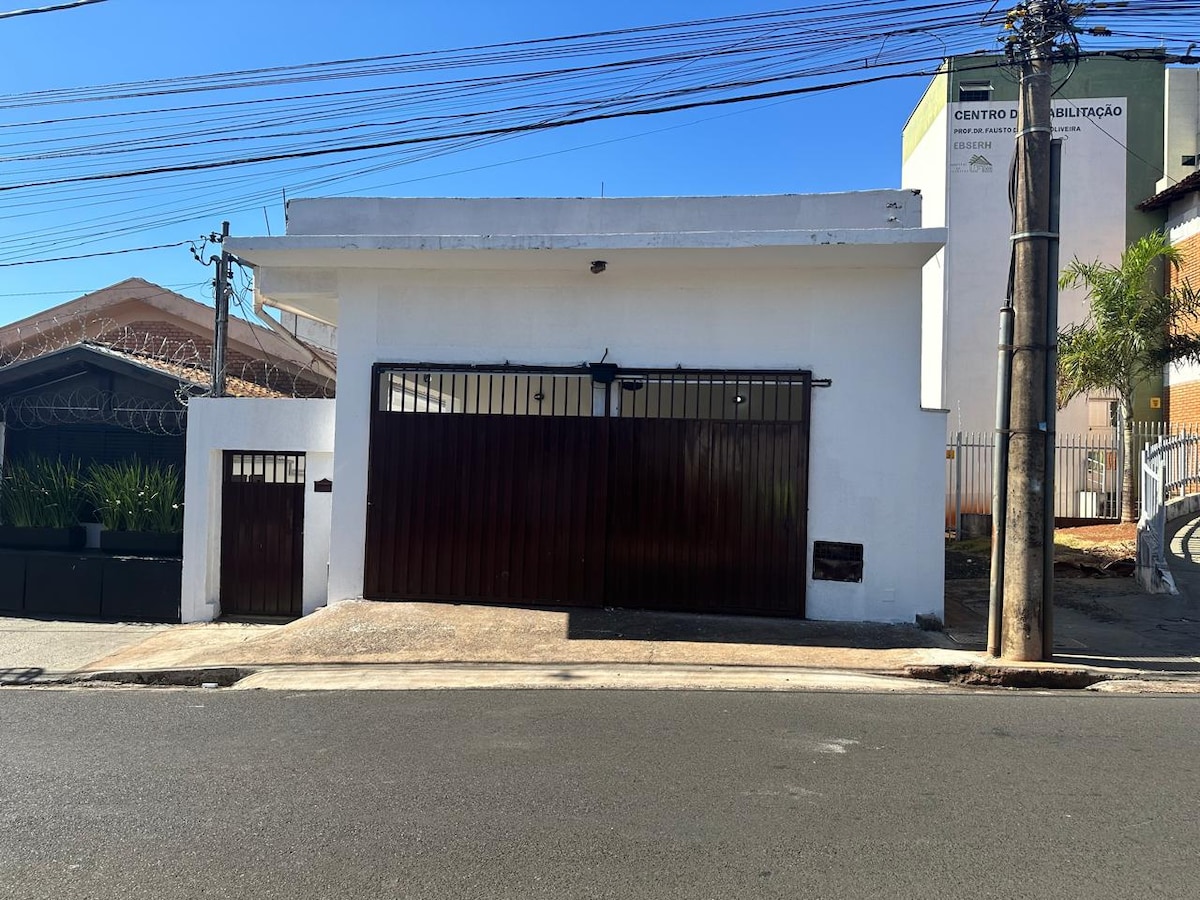 Venha conhecer a simplicidade e o conforto desta casa tranquila, agradável e com dois quartos. Ela acaba de ganhar um estacionamento próprio! A casa está em uma área arborizada e segura de Uberaba. Recentemente reformada, tudo está novinho – janelas, pintura e armários. A localização é ótima, com fácil acesso a tudo! Fica a apenas uma rua acima da Leopoldino, 5 minutos do Centro, do Hospital Escola e da UFTM. Ah, e se você tem um bichinho, pode trazer ele também, pois a casa é pet friendly.