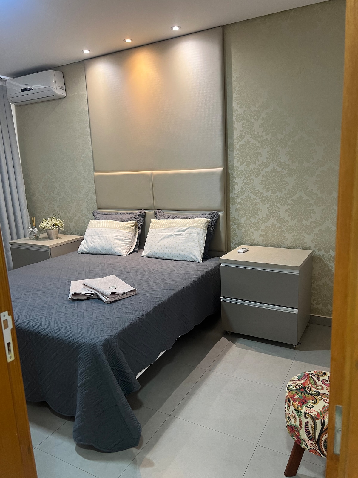 Apartamento novo, com elevador, região privilegiada próx a ufu, shopping, parque do sabia. São dois quartos, sendo um suíte com ar, cama casal, sacada, e cortina black out. Segundo quarto com cama queen, cortina black out e ventilador. Banheiro social. Sala com sofá retrátil, Smart tv 55”. Cozinha completa com itens básicos (panelas, pratos, cafeteira, liquidificador). Lavanderia com máquina de lavar. Uma vaga de garagem, não cabe camionete. Wi-Fi. Será um prazer recebê-los!
