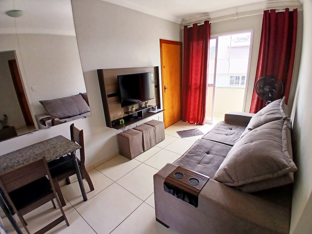 MRV Condominium - simple. Only 1 parking space 🚙. Apartment in the South Zone of the city, Wi-Fi, ideal for working and relaxing. 🚭SMOKING IS PROHIBITED!! R$300.00 ✅ Air conditioning (12,000 BTU) ONLY IN THE DOUBLE BEDROOM. Nearby: Uberlândia Shopping, Arena Bali Quadra de Areia, UNITRI and PITÁGORAS universities, Palácio de Cristal. SUPERMARKET across the street. POOL CLOSED FOR MAINTENANCE ON MONDAYS AND THURSDAYS.