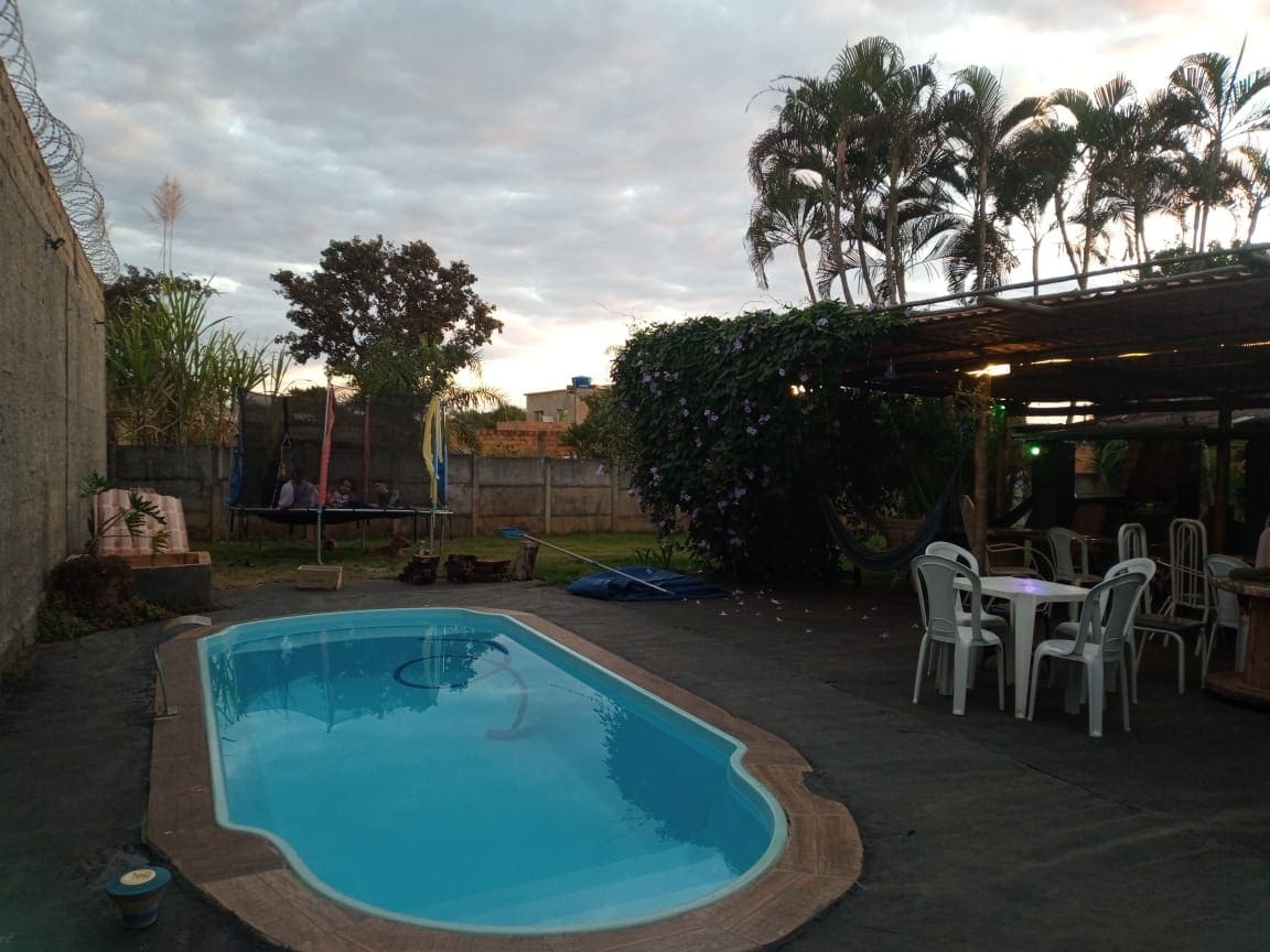 Chácaras Betel dispoe de um ambiente aconchegante, com toda infraestrutura para receber vocês. Terreno 1000 MT2, casa com varanda, 2 quartos, 2 banheiros, cozinha, fogão industrial, fogão e forno a lenha, wi-fi, mesa de sinuca. pula pula 3mt. piscina com a que cimento solar e luz de led. Estacionamento para 15 carros, próximo de supermercado, padaria e ponto de ônibus. Área para descanso com redes e cadeiras.