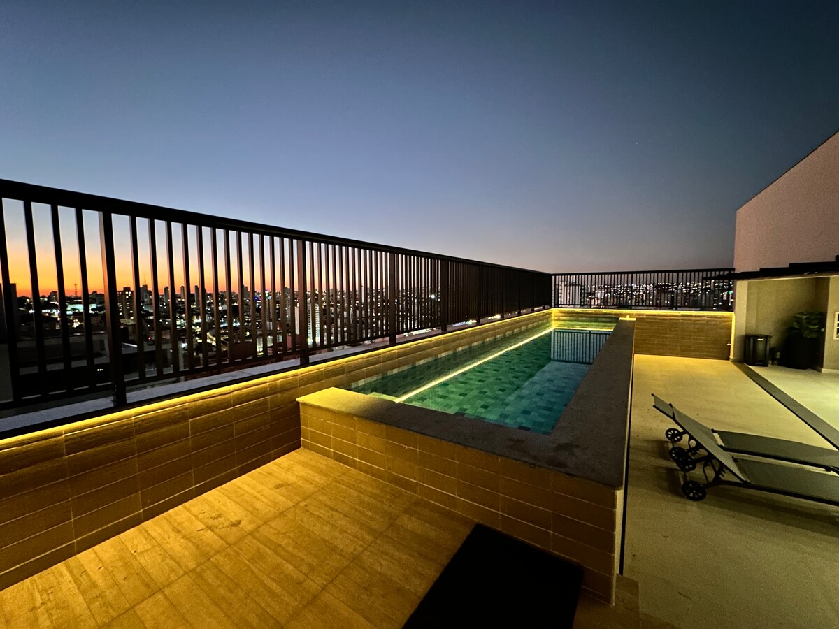 Seja bem-vindo ao Skyline Loft, um espaço moderno e sofisticado, projetado para quem busca conforto, estilo e uma vista de tirar o fôlego. Localizado em andar alto, este loft oferece uma panorama deslumbrante da cidade, perfeita para contemplar o pôr do sol ou aproveitar uma noite iluminada pelas luzes urbanas. 📍 Localização estratégica, próximo a restaurantes, cafés, shoppings e vias de acesso rápido. Ideal para viagens a lazer ou negócios.