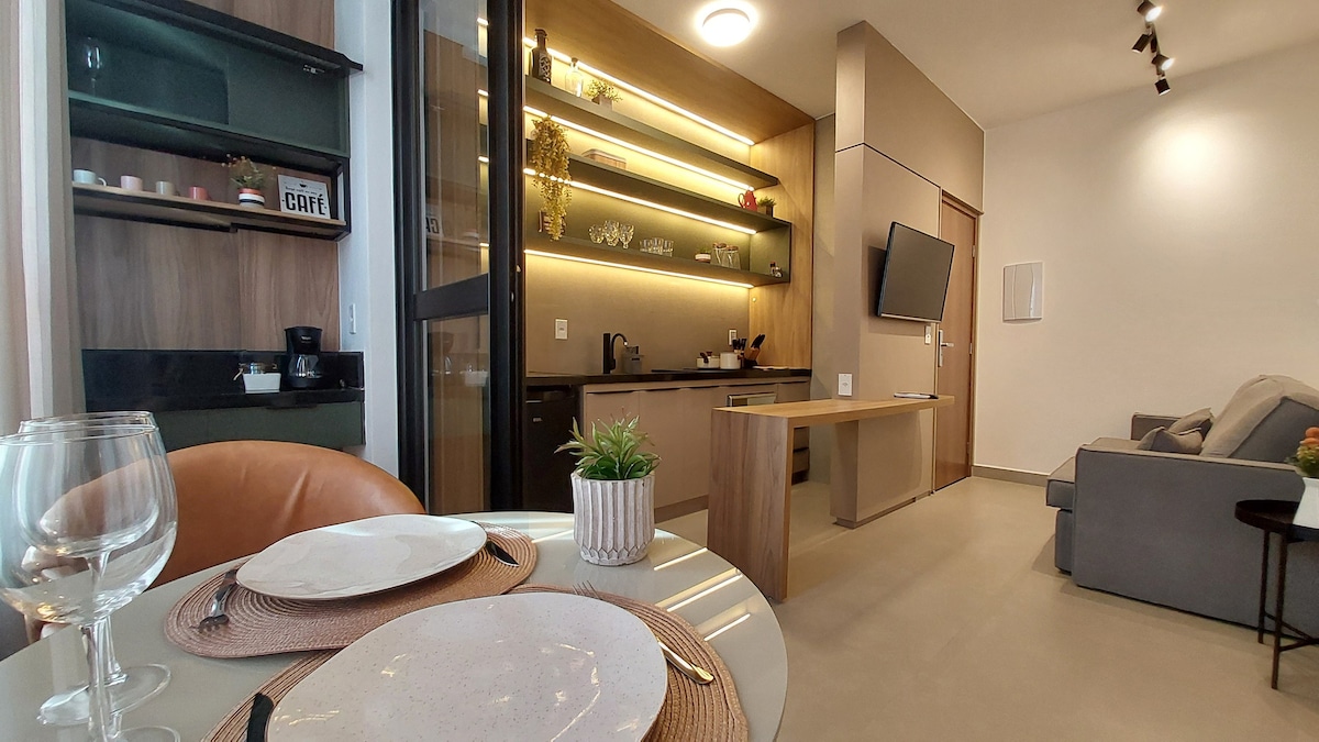 Urban Loft | Style and Comfort in the Heart of Uberlândia Welcome to the Urban Loft, where modern design meets coziness in a space perfect for those seeking practicality, style, and a prime location! This compact studio was designed to provide comfort and functionality. The sophisticated décor, with urban and modern elements, creates a warm and inviting atmosphere — ideal for couples, business trips, or leisure stays.