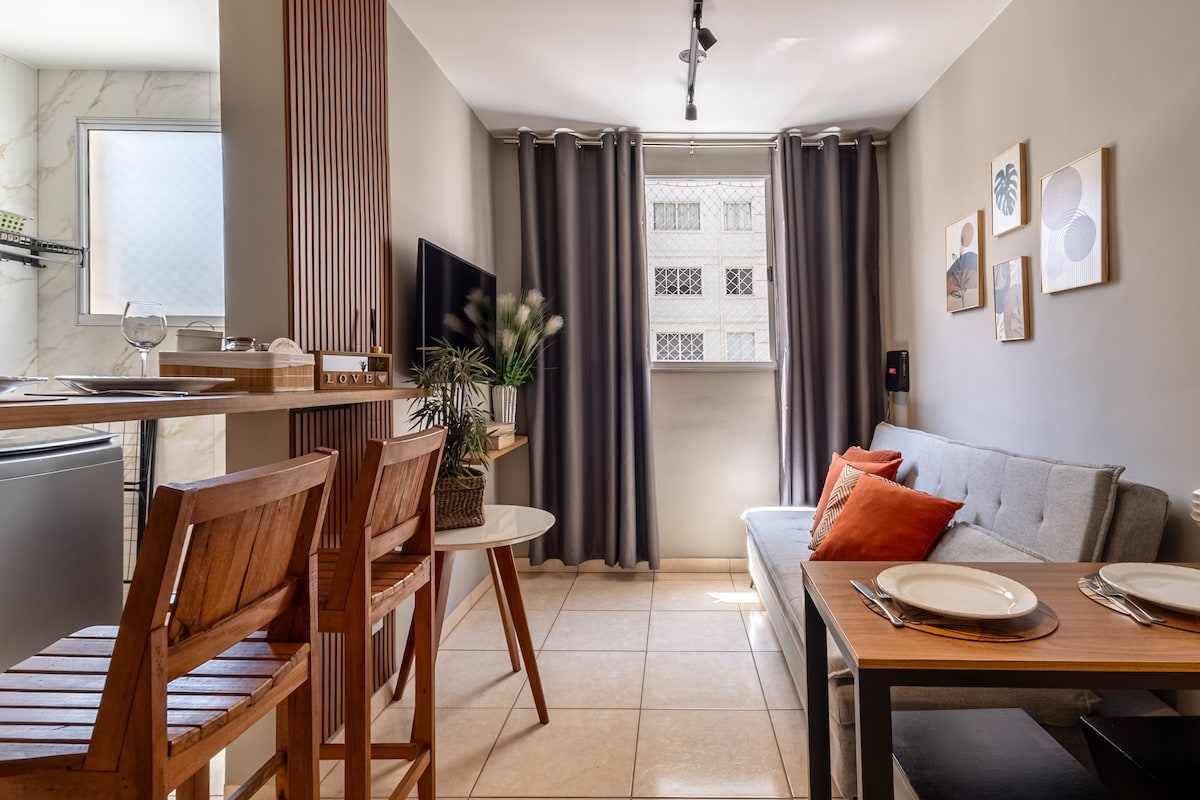 Studio completo, moderno e aconchegante — perfeito para curtas ou longas estadias. Pet friendly, com internet rápida, cozinha totalmente equipada (panelas, utensílios e eletros), e uma vista linda para relaxar. O condomínio oferece piscina, lavanderia, academia e portaria 24h, além de estar muito bem localizado: perto de padaria, farmácia e mercadinho. Um espaço pensado para quem busca conforto, praticidade e bem-estar.