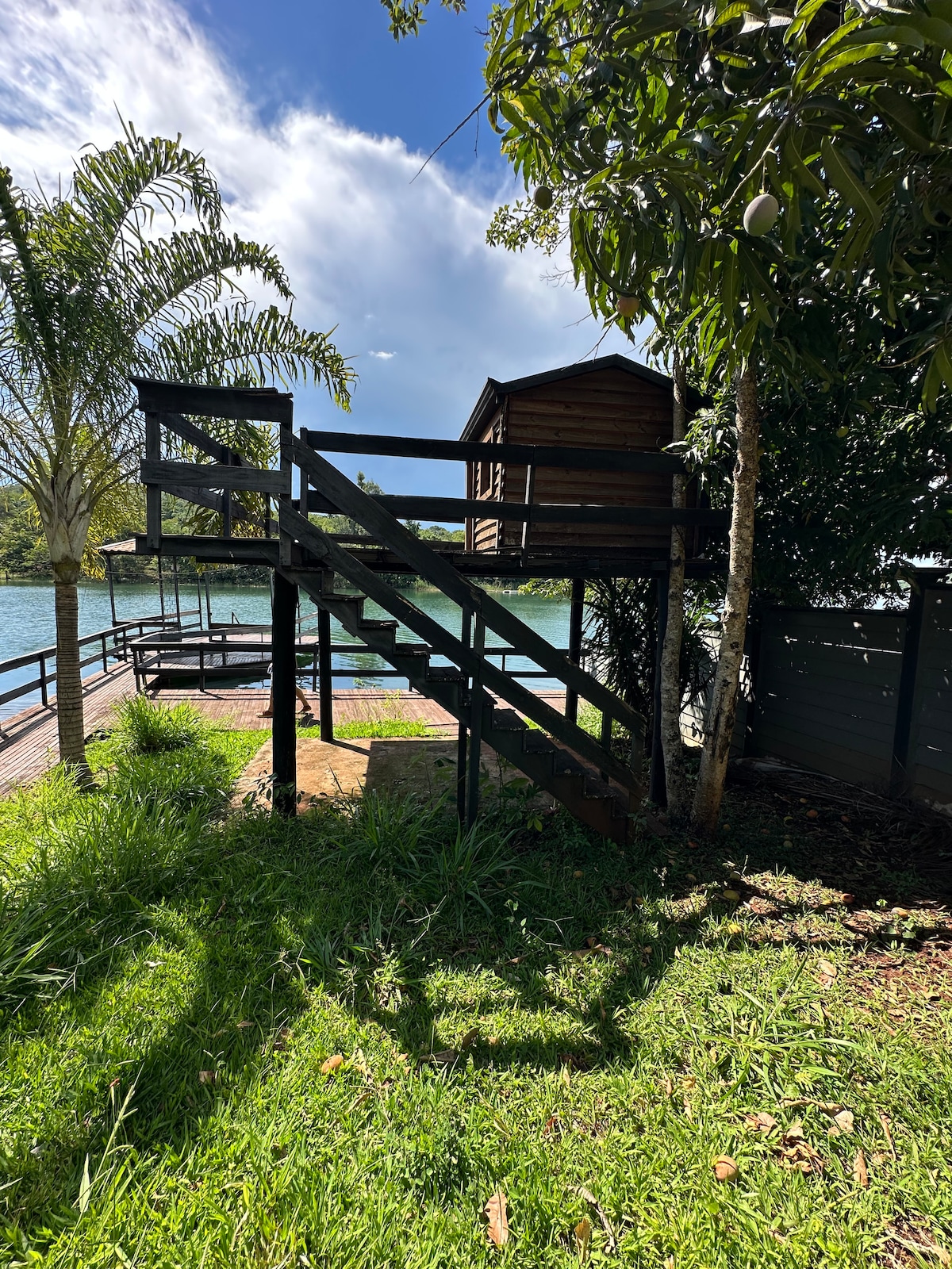 Chácara Dona Lázara, localizada no Distrito Rural de Uberlândia, no Condomínio Miranda 7, a menos de 40 km da cidade. Refúgio completo com acesso direto à água, deck exclusivo para pesca e banho, caiaque e espaguetes para lazer. Conta com varanda, churrasqueira, mesa de sinuca, Wi-Fi, casinha de boneca na árvore e suíte externa. São 3 quartos internos, sendo 1 suíte, além de sala com sofá-cama. Ideal para descanso e diversão em meio à natureza.
