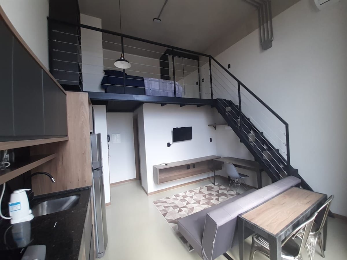 Apartamento (loft), com 38 m2. Possui 1 cervejeira ,1 geladeira nova. Tv 44 polegadas giratória, com rotação para quarto e sala.Cortinas entre sala e quarto três camadas. Lava seca. Forno Brastemp 3 em 1 novo. Cooktop com 5 bocas, depurador de ar suggar. Churrasqueira de carvão na sacada. Toldo para sol. Mesa alta de madeira na sacada. Ar condicionado, divisórias de vidro canelado no quarto e área de serviço. Tábua de passar embutida. Filtro soft de água gelada e natural. Possui 1 garagem.