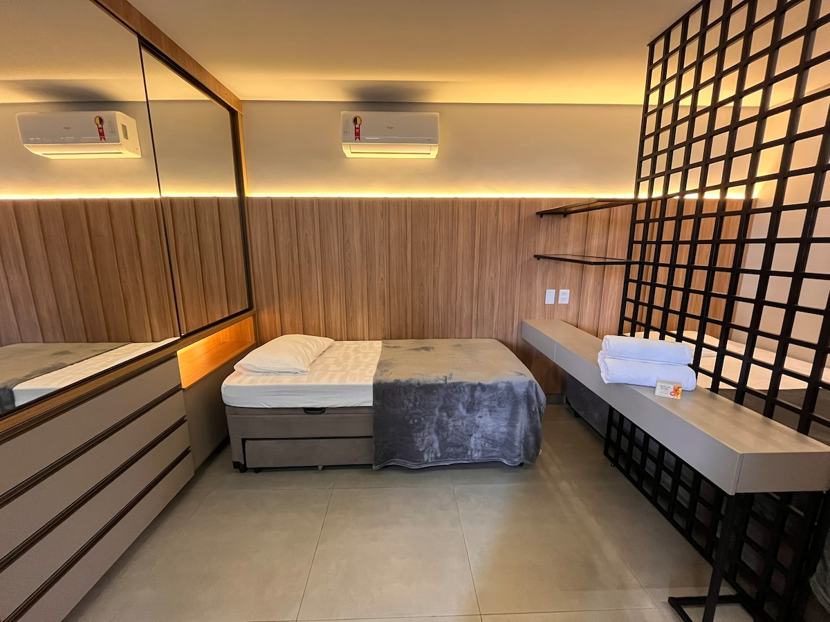 Flat localização na zona sul, lugar tranquilo e muito bem-localizado. Próximo à padaria, farmácia e aí melhor clube da cidade (Praia). Prédio possui piscina, área para churrasco, sala de estudo, sala de jogos, academia, lavanderia, sala de cinema, garagem, mercadinho (Conveniêcia 24 horas self-service), portaria 24 horas. Região segura e próxima ao centro da cidade e supermercados! Prédio possui 3 elevadores! Área para trabalho em Home office. Excelente custo benefício!