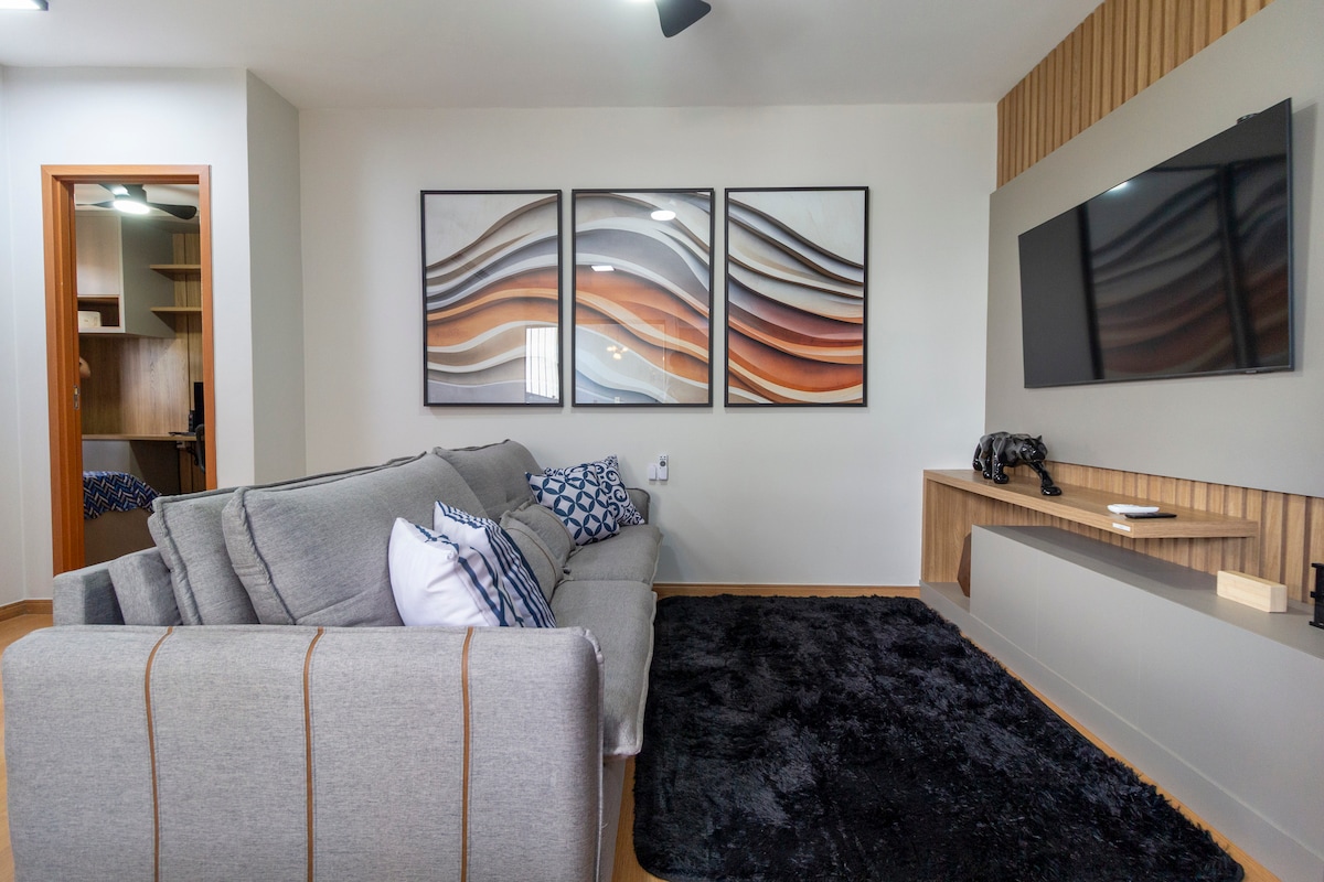 Studio completo, moderno e aconchegante — perfeito para curtas ou longas estadias. Pet friendly, com internet rápida, cozinha totalmente equipada (panelas, utensílios e eletros), e uma vista linda para relaxar. O condomínio oferece piscina, lavanderia, academia e portaria 24h, além de estar muito bem localizado: perto de padaria, farmácia e mercadinho. Um espaço pensado para quem busca conforto, praticidade e bem-estar.