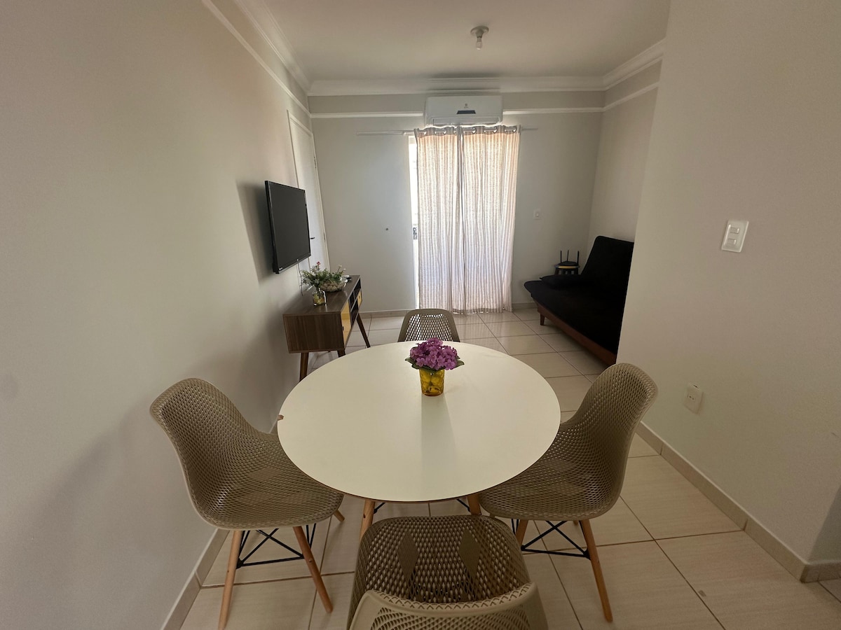 Apt lindo novo, decorado prox shopping, ar e Wi-Fi