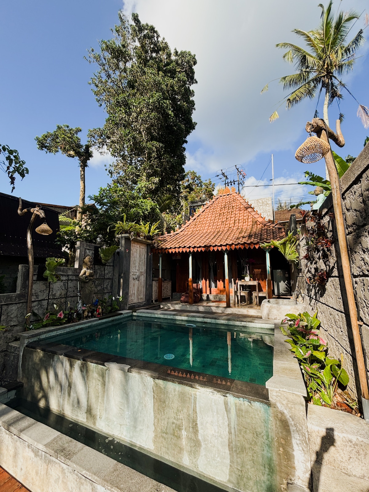 Get your best Bali trip with us this unique and tranquil getaway would make unforgettable experience. we have designed this unique house for Nature Lover, you will feel like you are staying in the nature, most amazing that you can pull your bed in to the balcony were you can enjoying most beautiful sunset and jungle. you also have amazing big worm bath beside your bed (flower bath additional charge) you have Swing and hammock as well. you have also a private natural disign of pool.