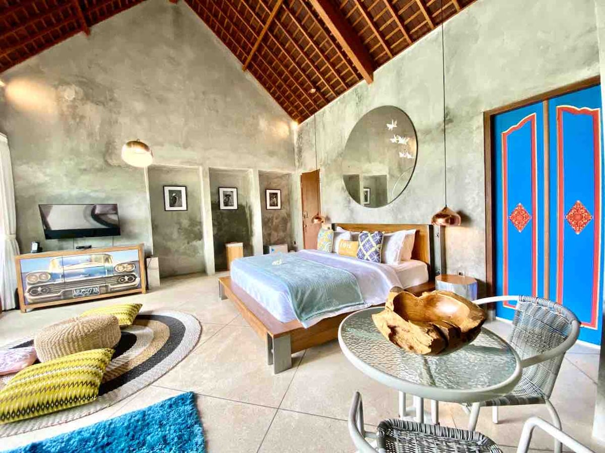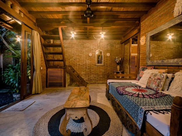 Terkonsep dengan sangat detail, didekor etnik dengan sentuhan bohemia dan tetap dengan nuansa Ubud yang natural, dengan gaya lumbung (tempat penyimpanan hasil panen tradisional Bali). Villa ini sepenuhnya private, kolam renang, dapur semuanya untuk anda. Setiap pagi kami menyediakan sarapan dengan berbagai pilihan menu, hidangan bisa di meja makan ataupun terapung dikolam renang, sesuai permintaan anda dan itu sudah termasuk dalam harga🙂🙂