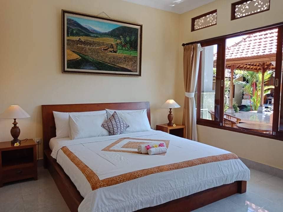 Our spacious and comfortable rooms have a queen-sized bed and provide hot and cold shower,wifi access and ceiling fan. Breakfast is included. We are located just 700m away from Monkey Forest and a 10 minute walk away from Ubud center. Im also provide taxi service for pick up,drop off,day trips around Ubud: Rice terrace Holy water temple Coffee plantation Waterfall Elephant cave temple Sunrise trekking Water rafting Cycling tour Cooking class Etc Please asking me for more information:)