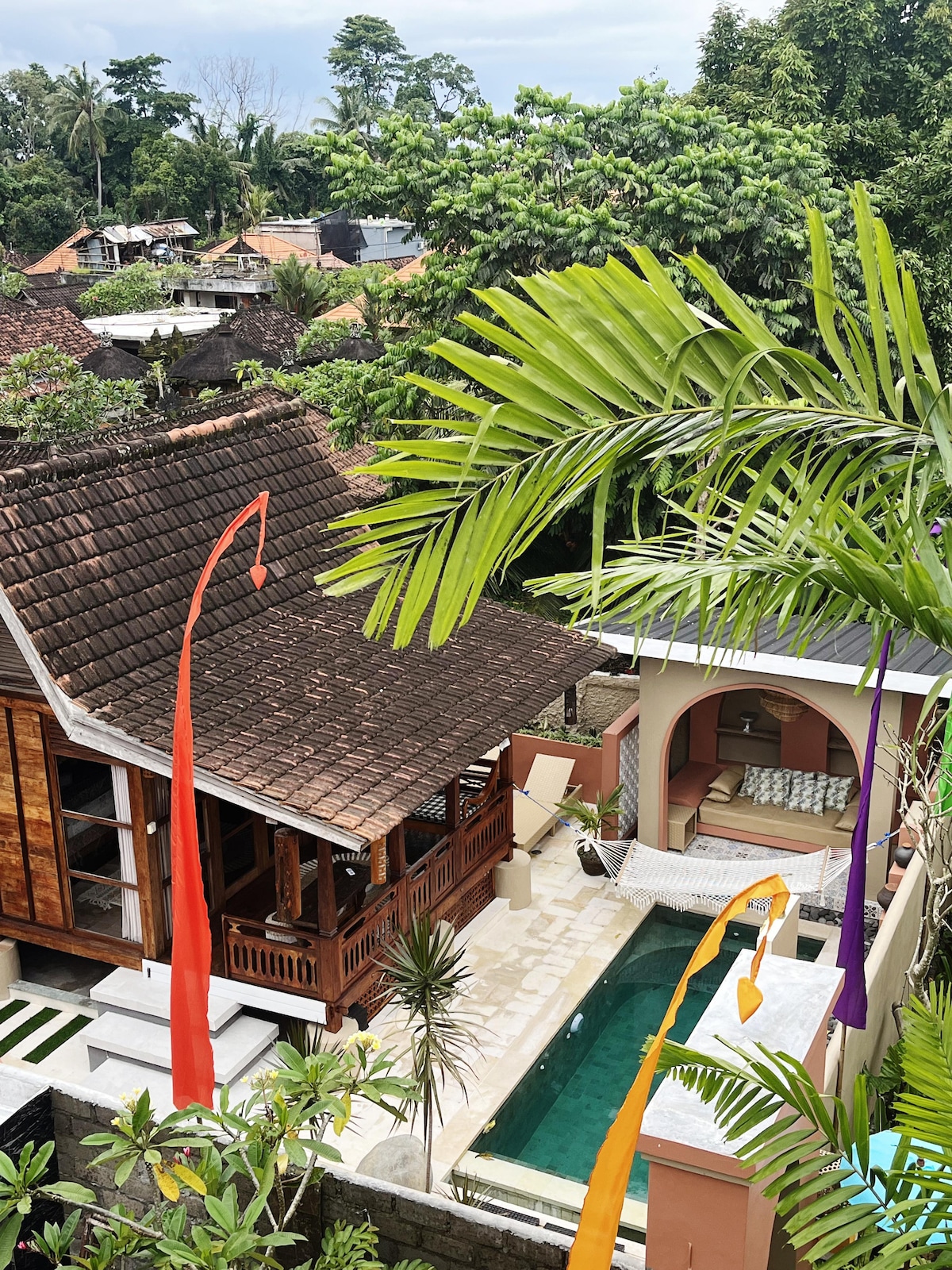 Hidden retreat in the heart of Ubud. Larger than most one-bedroom villas, with private terrace and courtyard garden, fast fibre-optic WiFi, designated work area, and space for yoga practice. Perfect for couples or solo travellers seeking a private, peaceful and secure base near yoga studios, cafes and Ubud's vibrant centre. Walk everywhere!