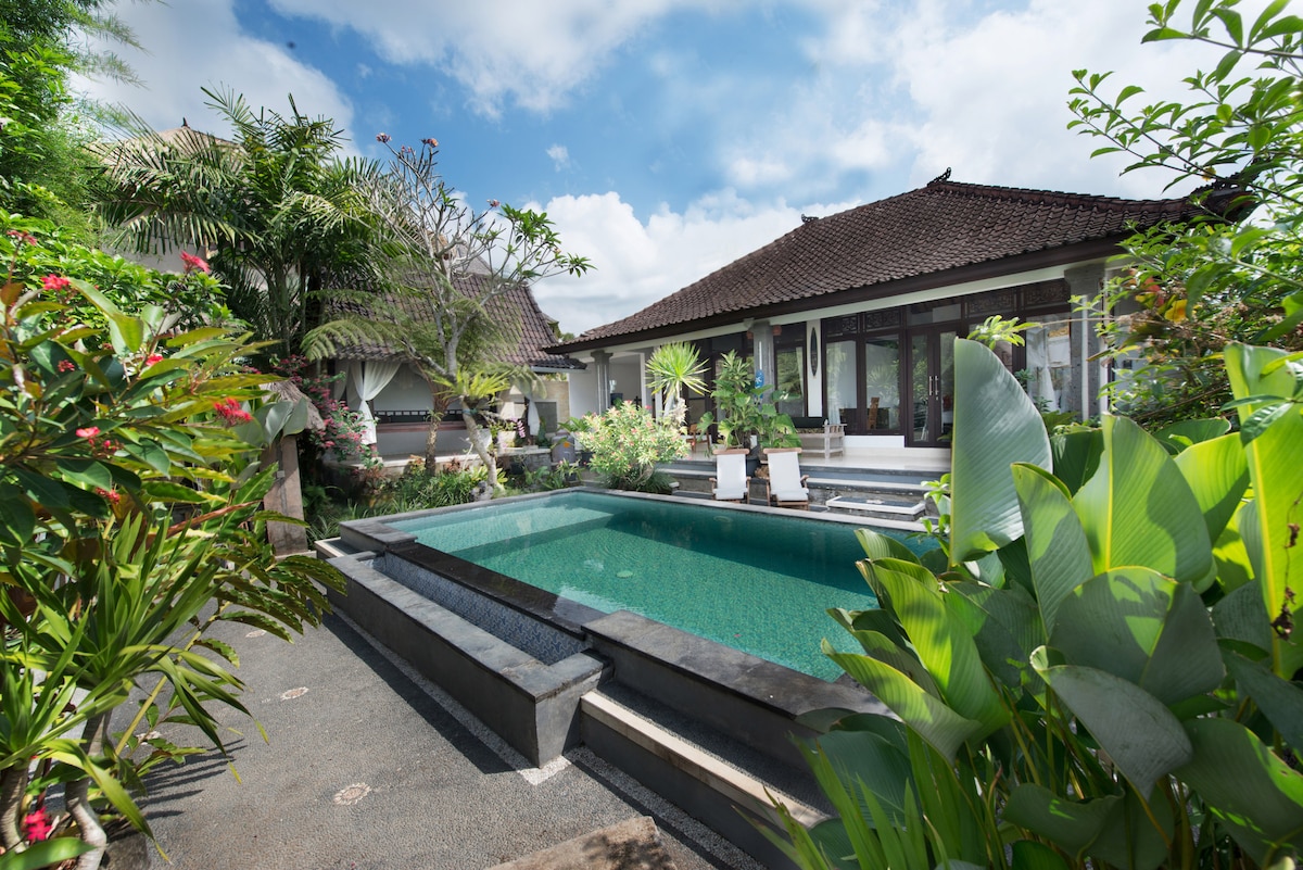 Welcome to the Ubud Center! This is the One bedrooms Private Villa among the two villas in the area. This in the two stories building with size around 80m square. It has private garden, private swimming pool. Located in the central of Ubud village within 10 minutes walking distance, but still in the quiet area. Very close with the Ubud Market, Ubud Palace, restaurants, shops, and yoga center. We provide daily housekeeping cleaning, breakfast, Internet access up to 75Mbps!.