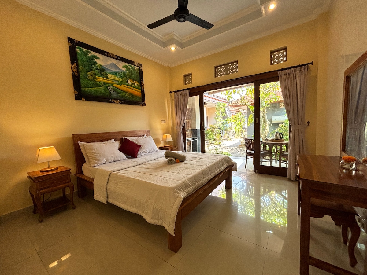 Our spacious and comfortable rooms have a queen-sized bed and provide hot and cold shower,wifi access and ceiling fan. Breakfast is included. We are located just 700m away from Monkey Forest and a 10 minute walk away from Ubud center. Im also provide taxi service for pick up,drop off,day trips around Ubud: Rice terrace Holy water temple Coffee plantation Waterfall Elephant cave temple Sunrise trekking Water rafting Cycling tour Cooking class Etc Please asking me for more information:)