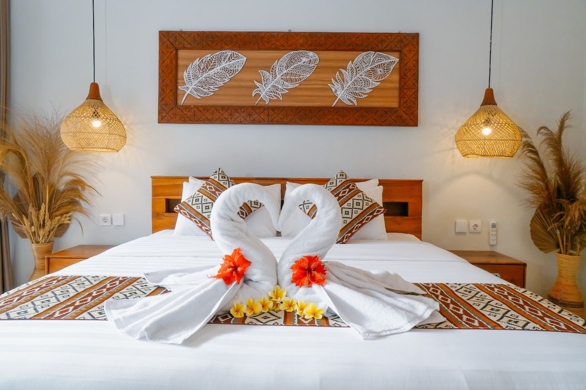 A luxurious classical Balinese escape. Leave the modern world behind to immerse yourself in private luxury and discover the essence of Bali in a natural playground alive with green fronds & sweet coconut aromas. The hum of Mother Nature rejuvenates you as shadows play across statues in the garden. Escape to this bespoke Balinese-style suite and feel the old gods of the island whisper to your soul. Unearth the true Heart of Bali in unique privacy. Warm smiles await you. Book your stay now.
