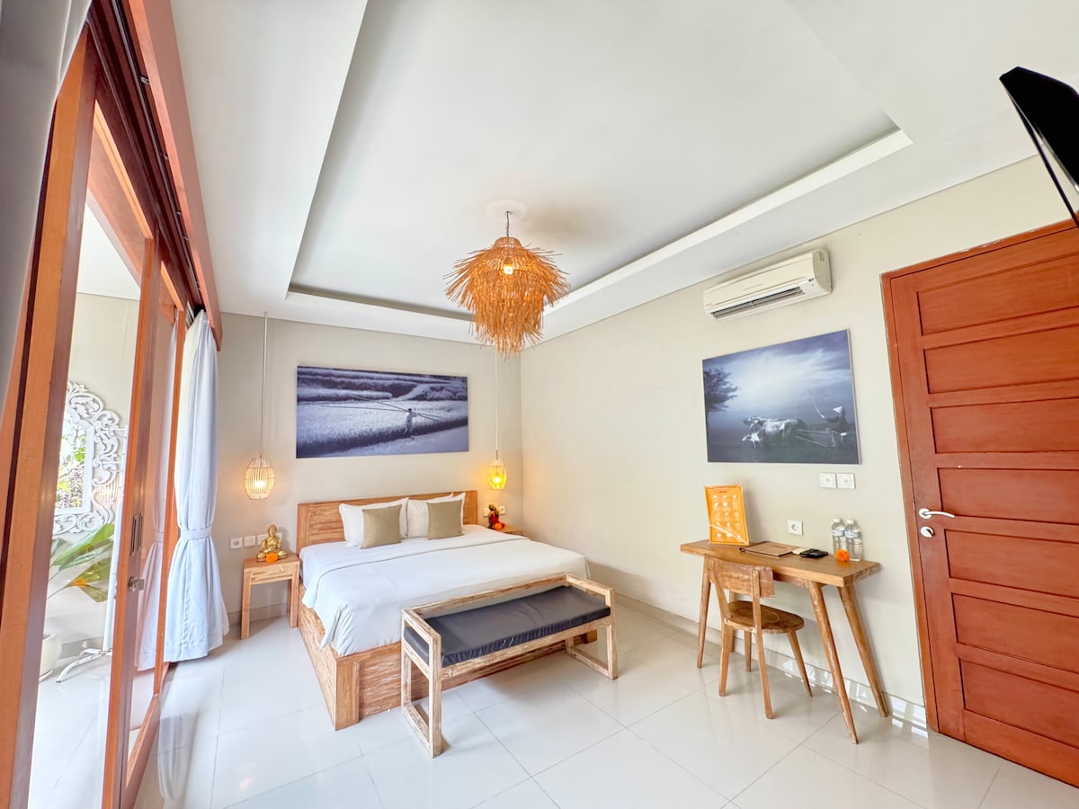 Welcome to The River Boutique Villa, a brand-new 2025 hideaway on Ubud’s high riverbank, created in line with the vision and expectations of modern travelers. Designed with a 4★+ boutique mood, this room comes with a private patio, en-suite bathroom, and stylish teak furnishings. Enjoy the shared pool, kitchen, lounge, and lush garden, all set against breathtaking river and jungle views. Quiet, elegant, and intimate. The villa is under management by a team with many years of luxury cruise ships.