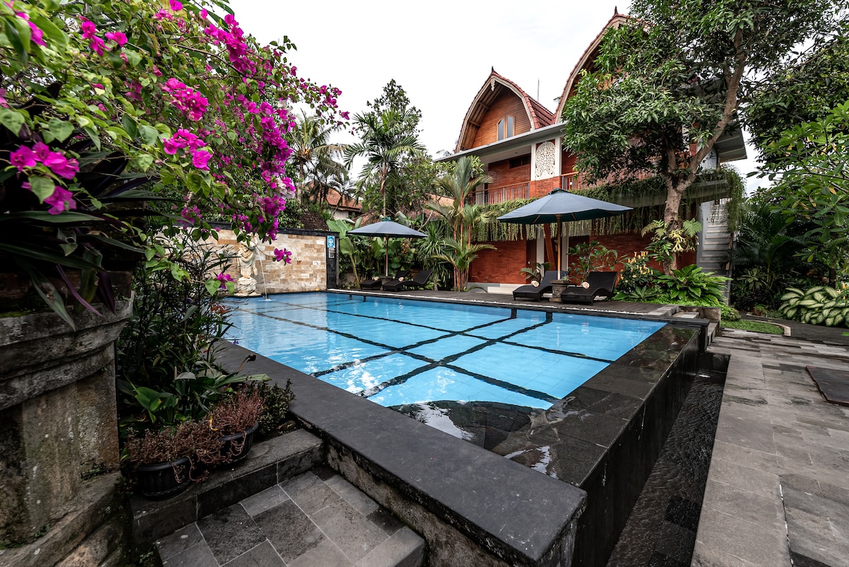 Suweta 46 House is the traditional Balinese house complex with several houses building separately set in one house area. The buildings are mostly designed by Balinese architectures taking daily social Balinese life concept pointing out the hospitality. It is very charming concept of house building consisted on several building with different purpose of activities. Peaceful place to stay and overlooking with the river view