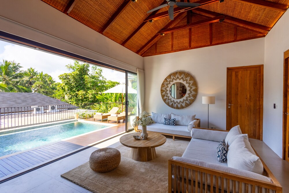 Suksma Villa offers a calm, stylish retreat with all the essentials for a comfortable stay. Clean architectural lines with warm, boho-luxe interiors. Every detail has been considered—from fast WiFi and ample built-in storage to a fully equipped kitchen, washer, and dryer. The open-plan living area flows out to a private pool, creating a cozy and quiet space to unwind. The villa’s design, functionality, and serene atmosphere consistently impress our guests.
