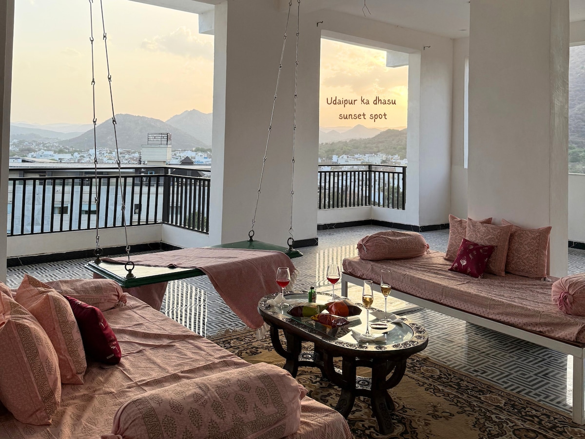 Wake up above the city to uninterrupted sunrise views over Udaipur’s lakes, hills, and skyline-right from your private terrace. Set atop a charming hill in the heart of the city, this boutique 2BHK Suite offers a rare blend of space, privacy, and calm-just minutes from the lakes. Perched on the top floor of Hill Villa Signature Suites, the experience extends into beautifully designed shared decks, lounge spaces, and a wellness zone with jacuzzi & steam for a relaxing unwind.