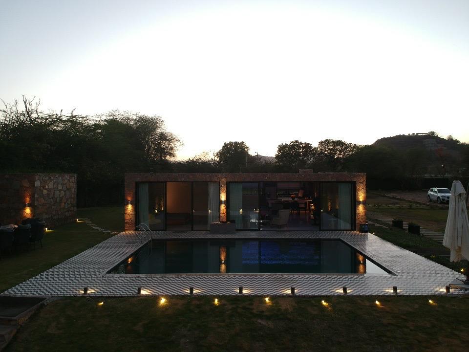 The Glass House is a 2 Bedroom Pool Villa with stunning view of Aravalis - farmlands and orchards. We can accommodate around 6 person in this two bed room villa We don't offer Luxury but Warmth & Comfort; offering simple food and an experience. People who loved staying here were Nature Lovers, Artists, Writers, Group of Friends who want to reunite and spend some time, Families who want to expose their kids to nature and Farm life and Human Beings who want to spend time in the hills.