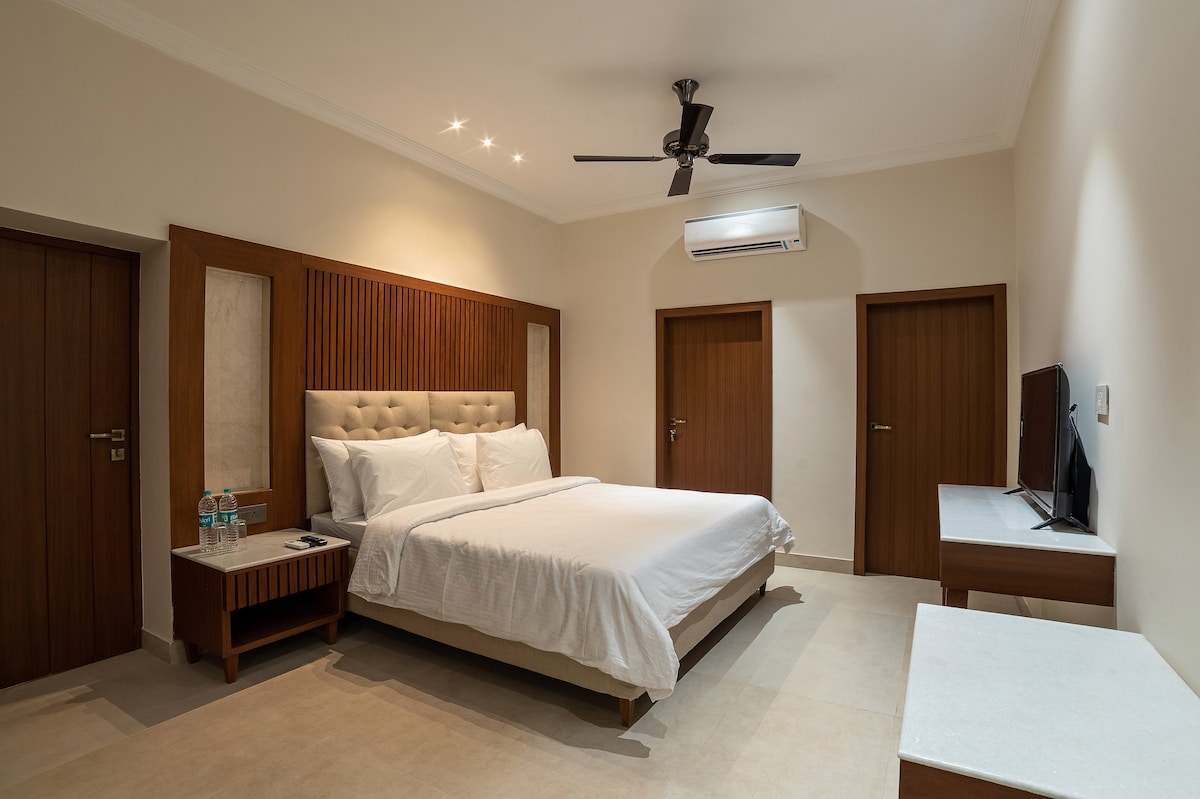❤️ Villa with two bedrooms having ensuite bathrooms. ❤️ Garden, Mountains, Fort and Temple View. ❤️ Complimentary Bonfire ( 2 hours) Extra wood On Cost. ❤️ 50" TV. ❤️ Mini Bar( Items on MRP) ❤️ Kettle and Tea Items( Complimentary) ❤️AC( Aircon). ❤️ High Speed Internet(Complimentary). ❤️ Outdoor Garden Dining. ❤️ Your Personal Room Attendant. ❤️ Chef on Call (Meal Charges Extra). ♦️ Extremely Safe Neighborhood & Gated Entrance. ♦️Free Car Parking. ♦️Car on Hire with Driver( Extra Charges).