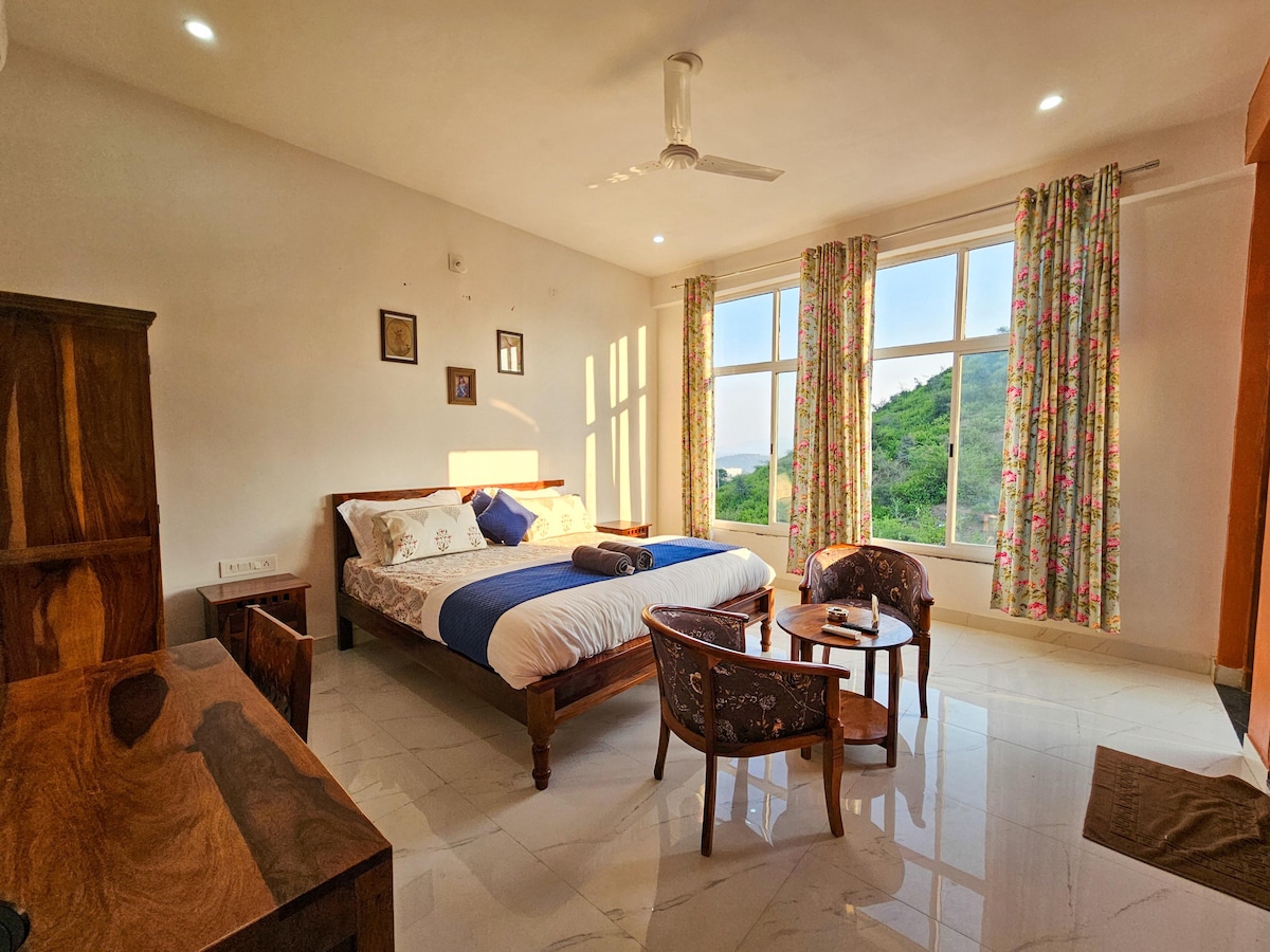 Welcome to Jannat – a luxury 2 BHK villa in Udaipur with a private pool, hill views, and peaceful surroundings. This luxury accommodation is pet-friendly and perfect for couples, families, or remote workers. Enjoy spacious bedrooms, a full kitchen, fast Wi-Fi, and total privacy. Relax in the garden or take in scenic mountain views. Book your stay at one of the best hill view villas in Udaipur and experience comfort, style, and serenity today!