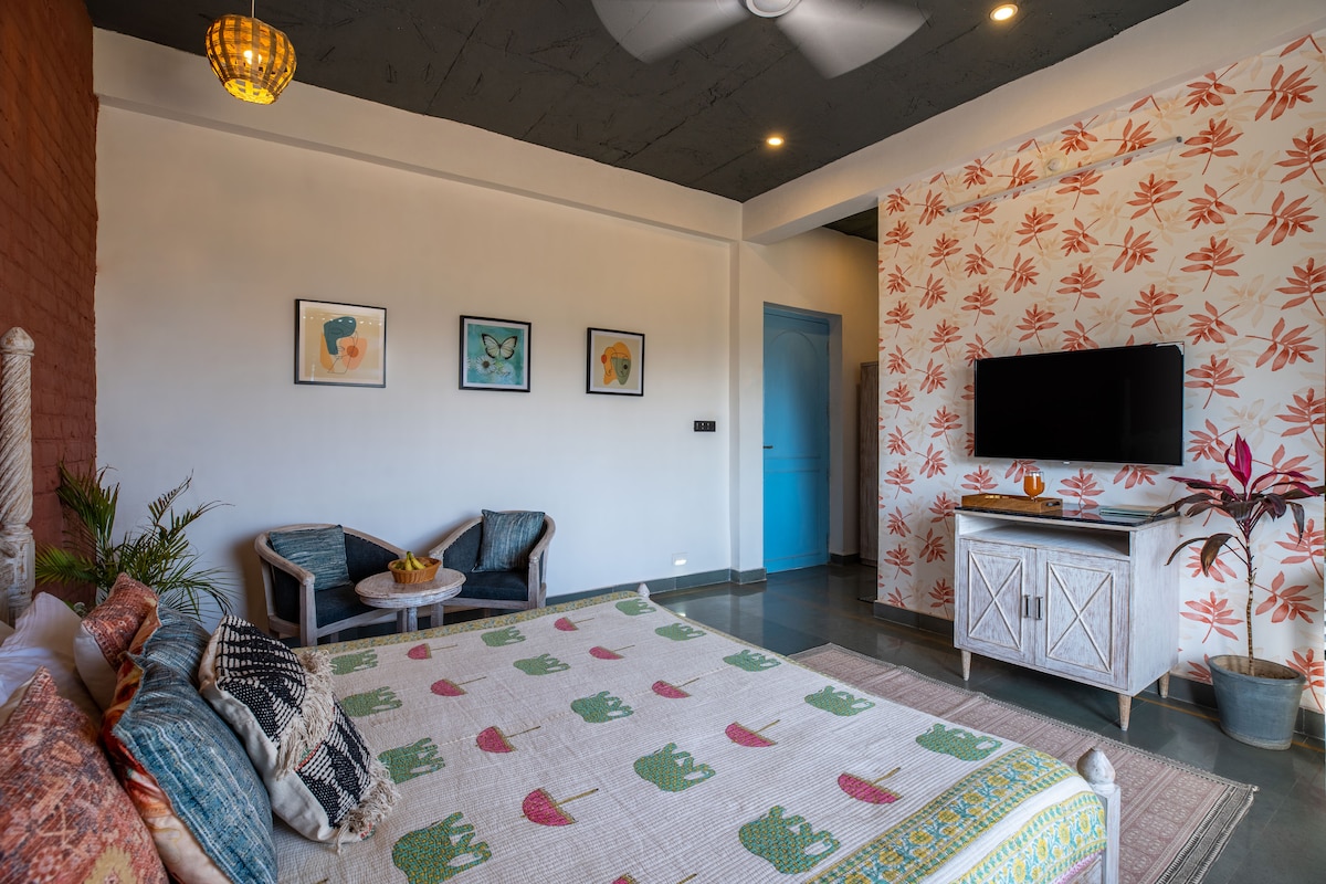 1 BR Art EcoStay | Lake-Forest-Pool-Birds@Udaipur