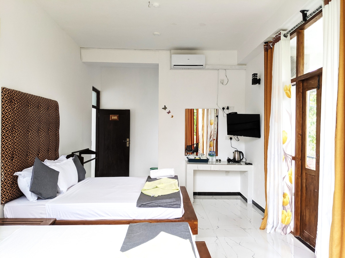 Stay at Lily Safari Resort – Udawalawa, just minutes from the famous Udawalawa National Park. Our comfortable double room is perfect for couples or friends, featuring air conditioning, hot water, and all essential amenities for a relaxing stay. Wake up to the sounds of nature, enjoy easy access to safari tours, and experience warm Sri Lankan hospitality. Whether you’re here for wildlife, adventure, or relaxation, Lily Safari Resort offers the perfect base for your Udawalawa getaway.