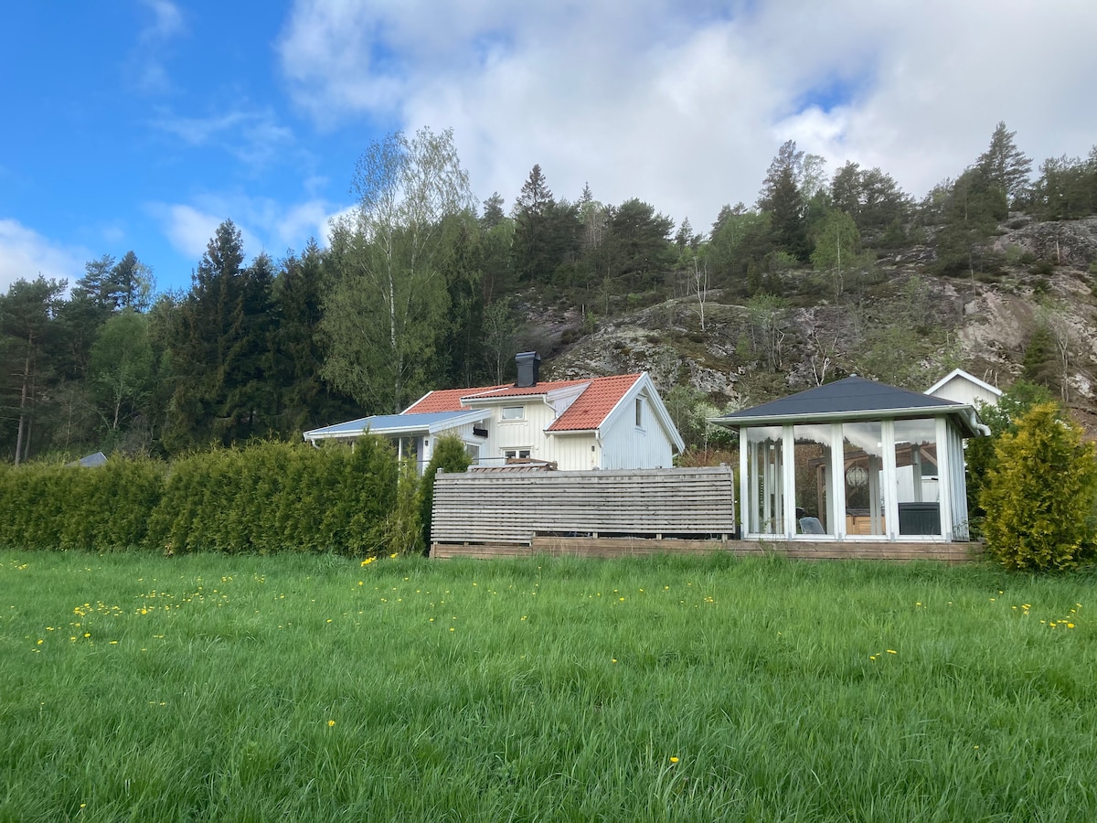 Comfortable holiday house for 6 pers, just outside Uddevalla, in the heart of the Swedish west coast. Perfect location with lots of privacy. Separate guesthouse available. Spacious terrace for sunbathing and evening bbq. You will love swimming in the fjord. Private beach and jetty (for the neighbourhood). Open fireplace and unlimited Wi-Fi. The house is also super cosy during the winter with an open fire place, warm bath in the hot tub and the sauna. A fantastic place to reflect over life.