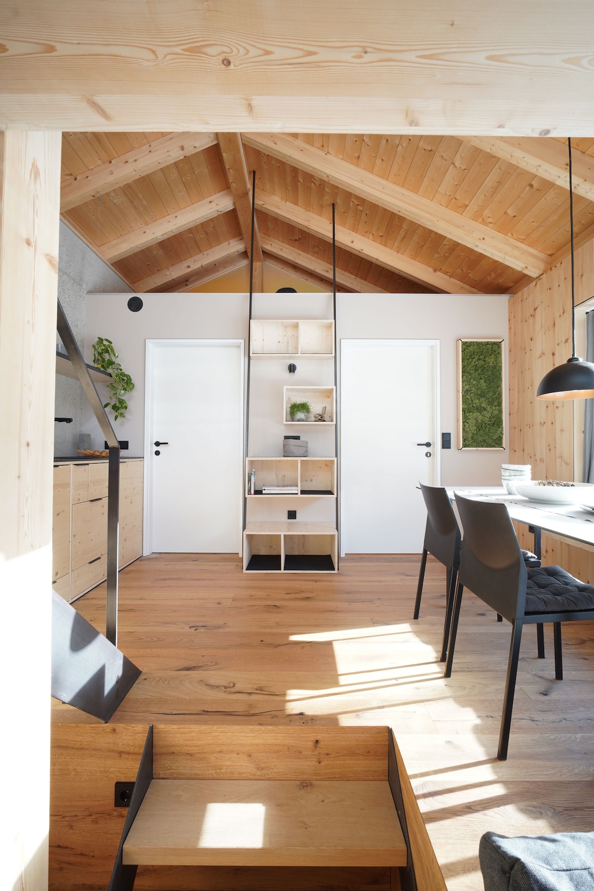 Architecture meets nature: Enjoy a handcrafted design concept with a panoramic sauna and river views. Floor-to-ceiling windows and a skylight above the bed let you sleep beneath the stars. Whether breakfast on the sun terrace or a dip in the Isar – time slows down here. Arrive, breathe, and feel at home.