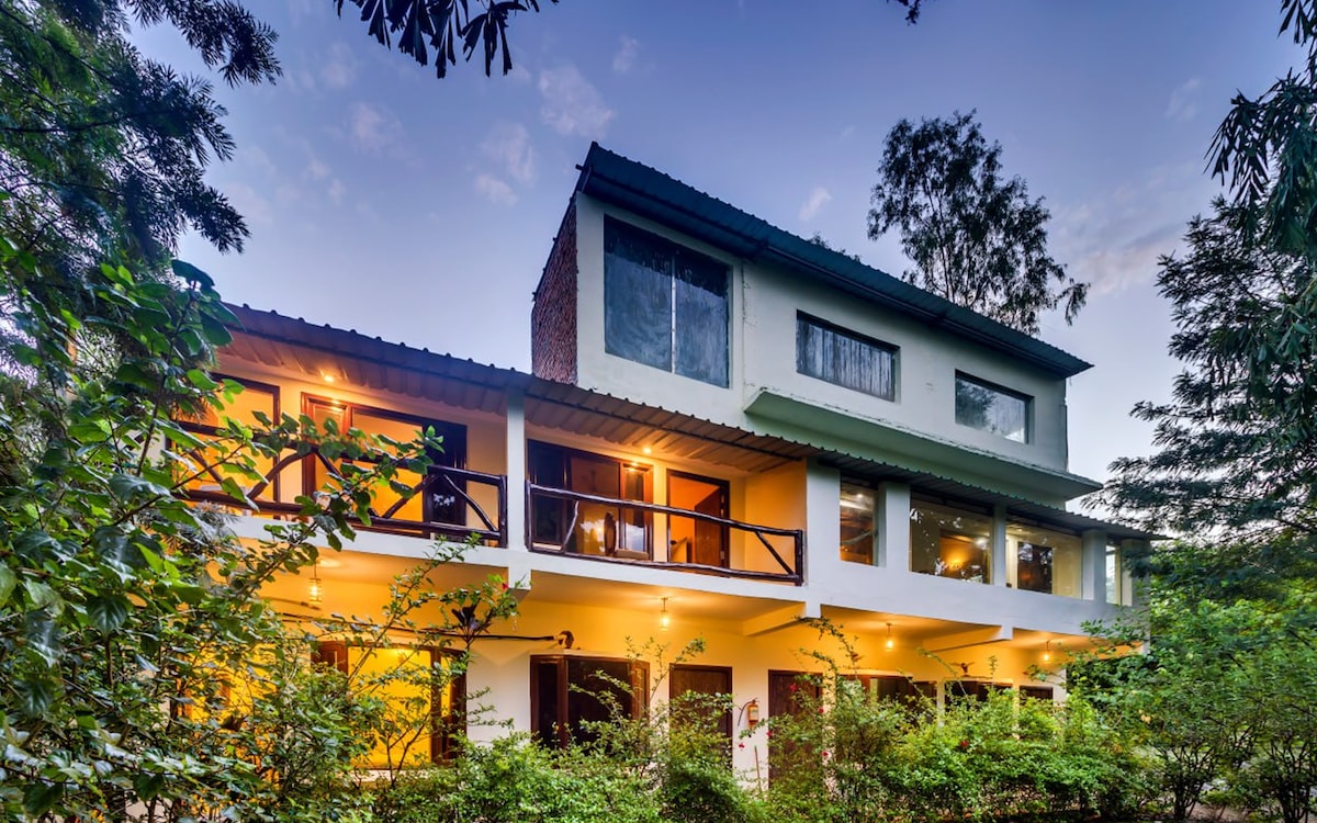 -Unplug, unwind, and reconnect in Kumaon’s wilderness. This cozy 2-bedroom villa, just 10 mins from Bhimtal, is perfect for families, friends, or elderly guests. Surrounded by greenery, enjoy slow mornings on the sunlit patio or a private pool from your ensuite. -Explore lakes, spiritual sites, and hill adventures, or relax with books, games, or bonfires. -This villa comes fully serviced with staff, and a private chef can be arranged at an additional charge for homely meals.