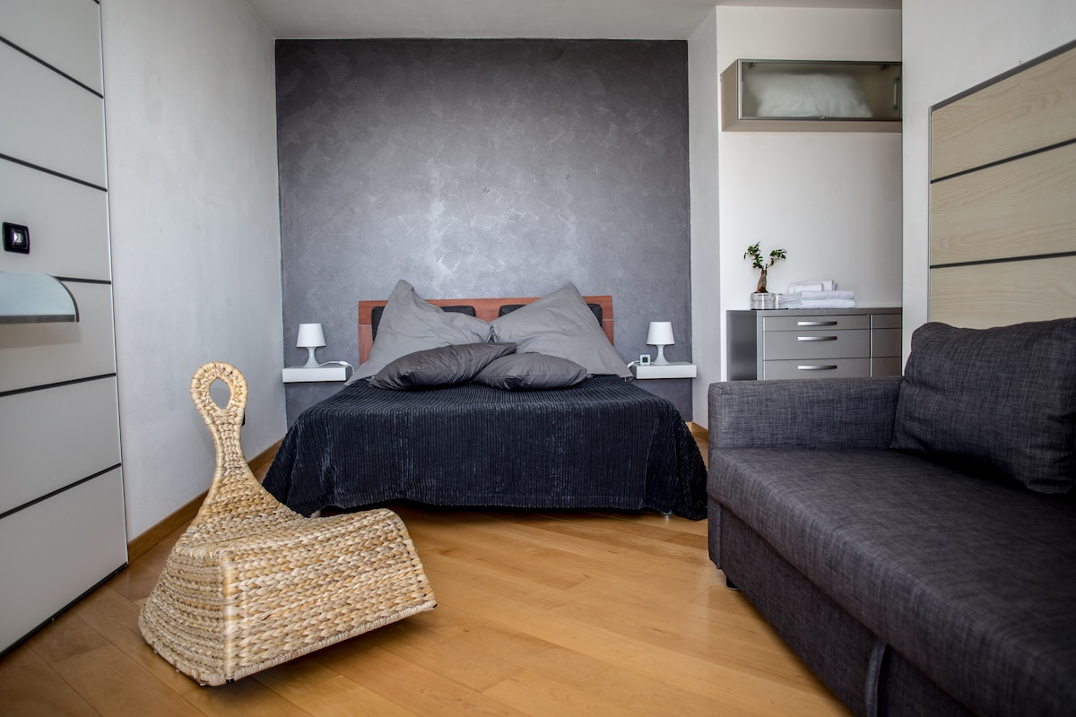 Suite 65 square meter SUPERIOR B&B suite room with 1 king bed, private bathroom. Large living room with 1 double sofa bed and another sofa, small fully equipped kitchen. Large terrace with exclusive views of the sea and the city. 5 minutes by car from the center and 10 minutes from the beach. Free parking. The house is surrounded by a beautiful private park and the area is quiet. free wi-fi. All space is private for the guest. tv netflix e eurosport gratuiti