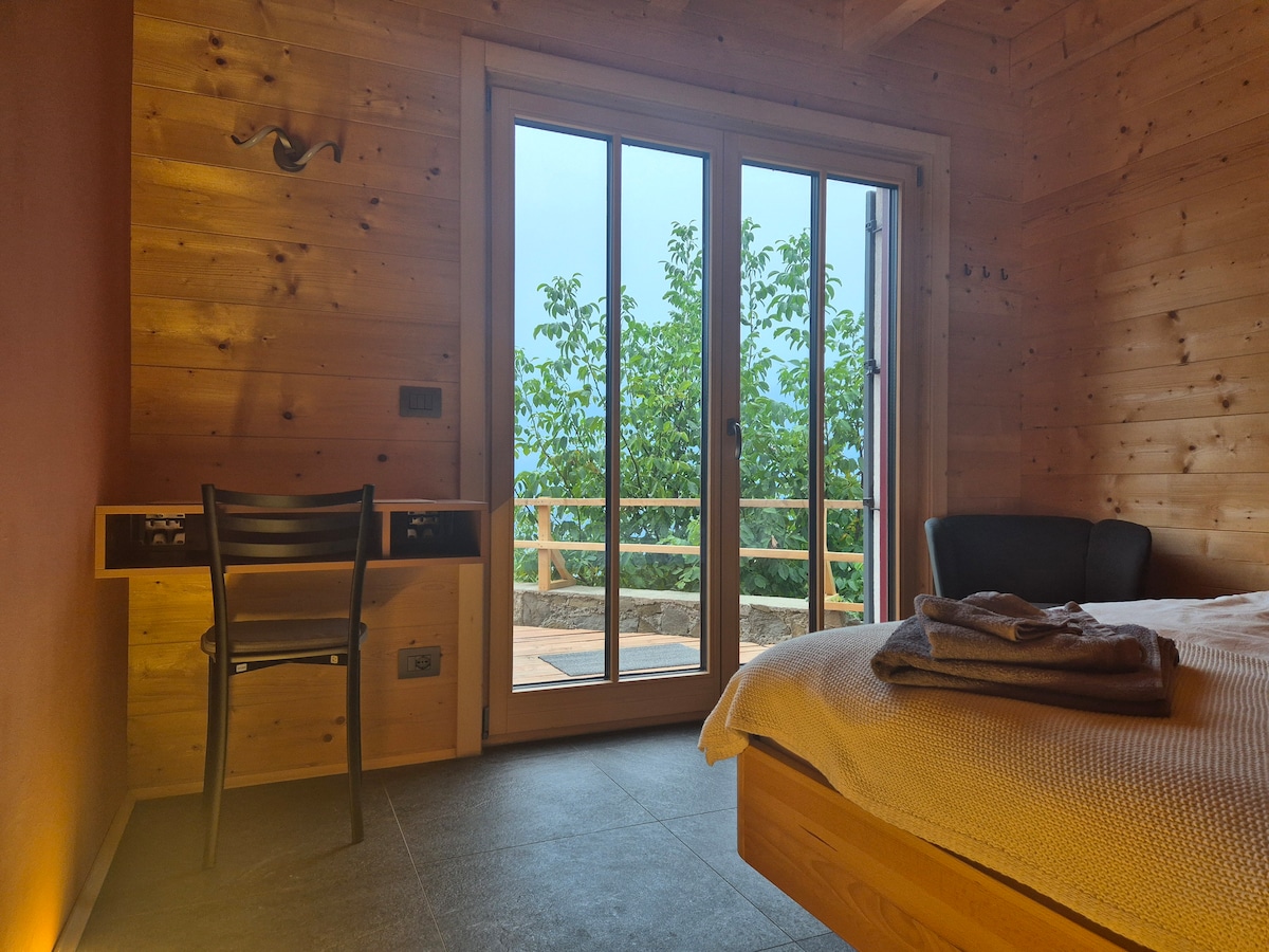Un nido tra bosco e cielo. Un piccolo lodge in legno e vetro, su un terrazzo in legno ai margini del bosco, dove godere di panorama, relax e privacy. Colazione detox/gourmet su richiesta.