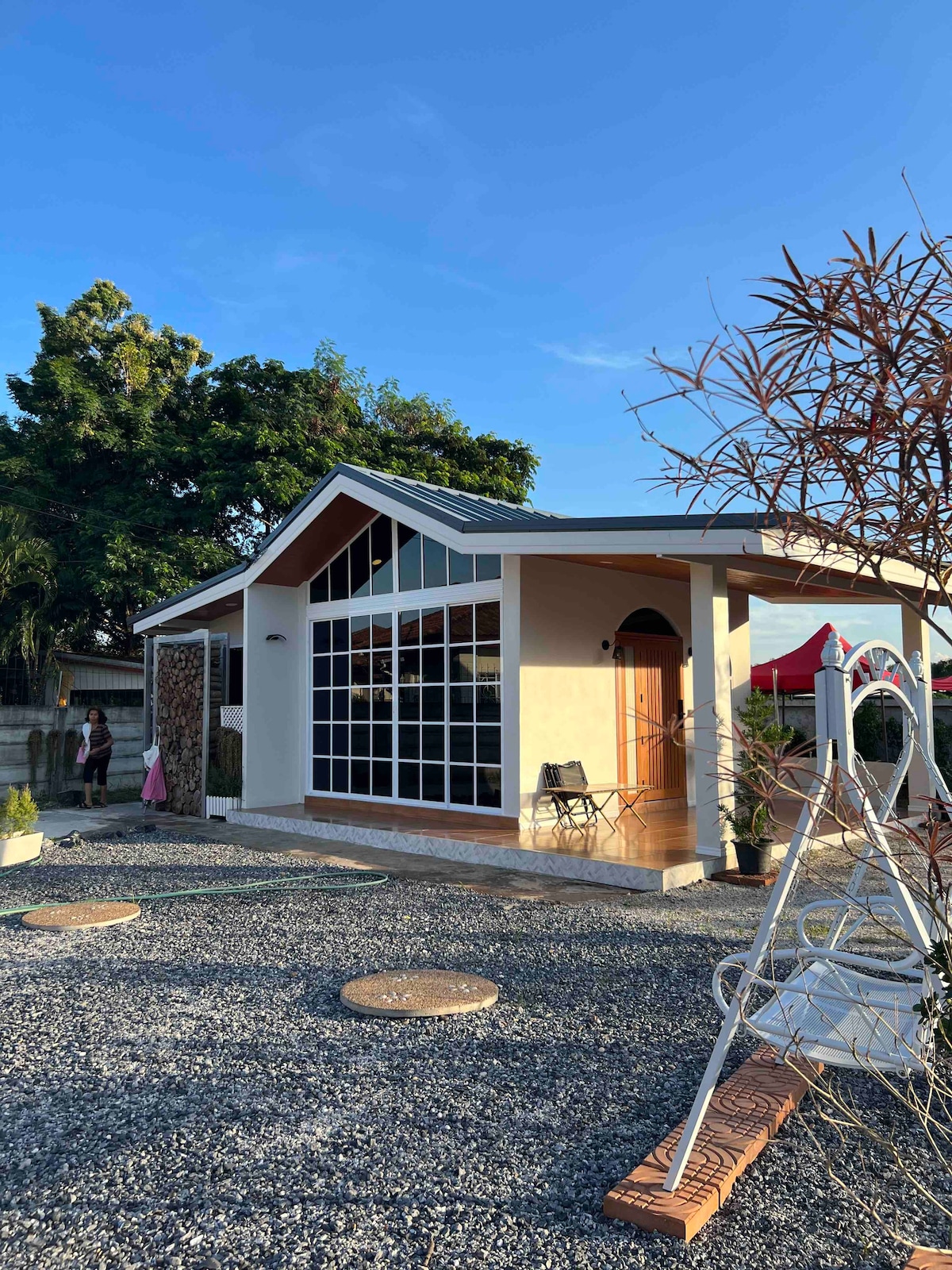 Special small house, fully equipped with facilities, with a large bed, bathtub, and a desk. Exclusively, there are only 3 houses now. You will feel the most private, like visiting a holiday home. The house is located in a quiet, peaceful setting, surrounded by a pond and trees. You can spend your days relaxing by the pond, reading a book, or working on your laptop. If you are looking for a special place to stay, this small, exclusive house is the perfect choice.