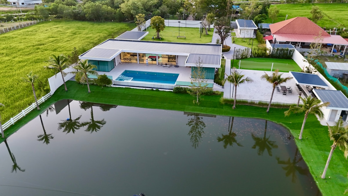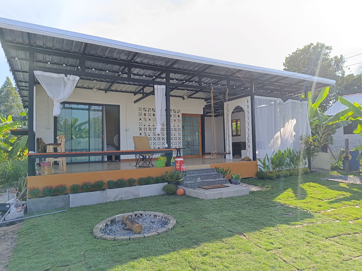 ผ่อนคลายกันพร้อมหน้าในที่พักแสนสงบ มีลานหน้าบ้าน สไตล์แคมป์ปิ้ง ใกล้หนองน้ำสาธารณะ ตกปลาได้
