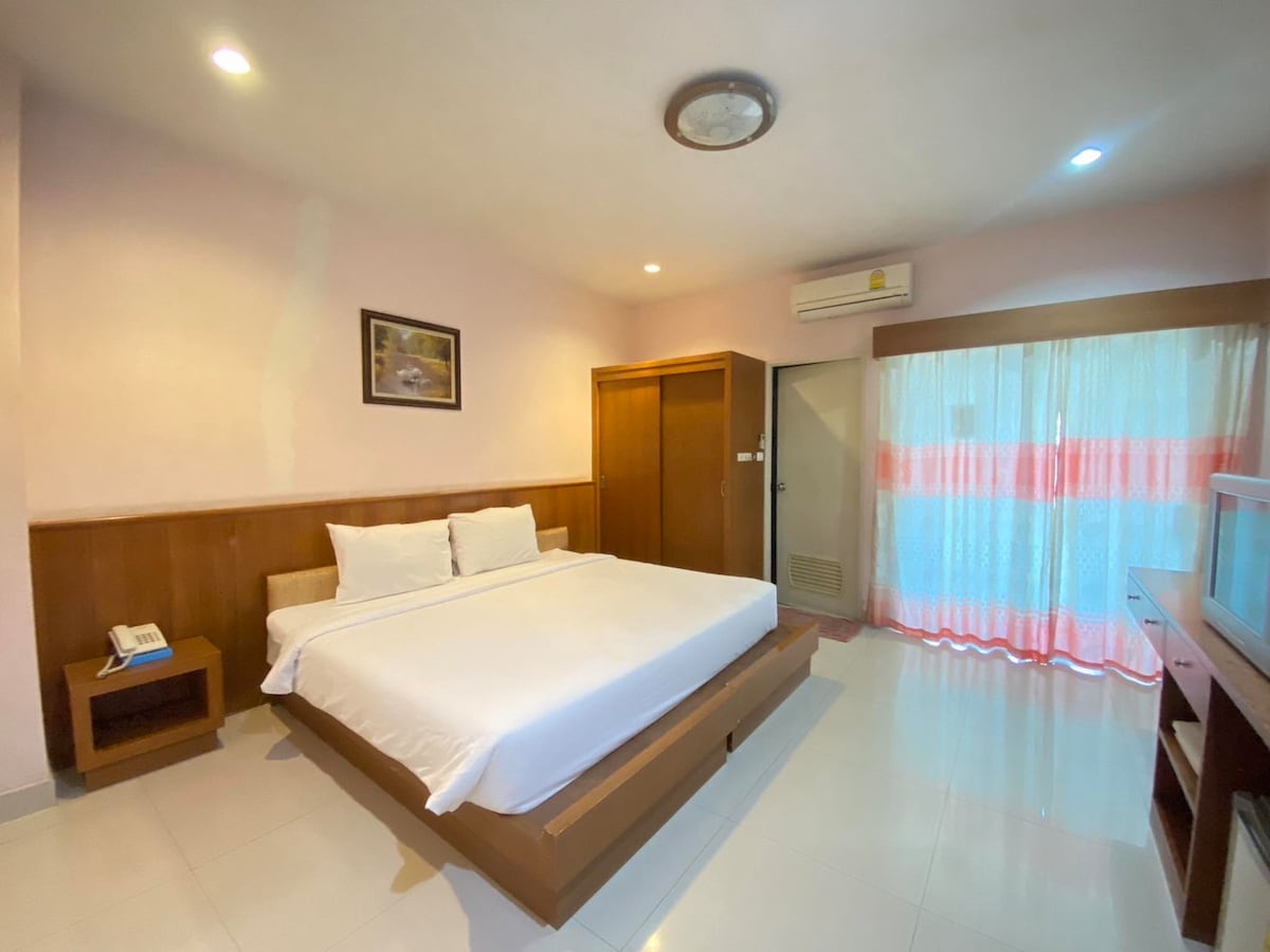 Deluxe room with king size bed located on the 3rd floor, access by the stairs. the hotel close to Udon Thani Airport.