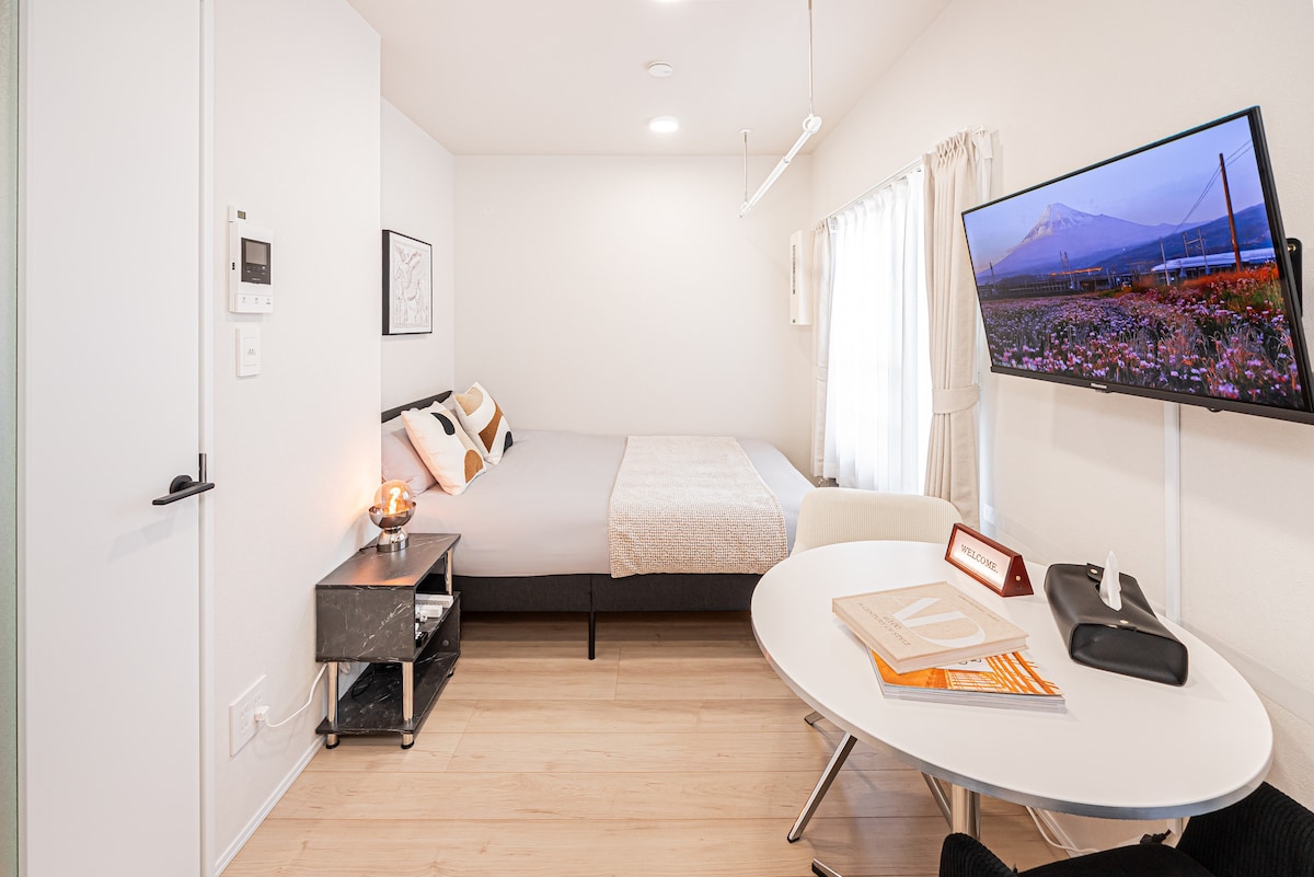 A stylish, modern condo-style hotel opened in May 2025, located in the heart of Akihabara. Just a few minutes’ walk from both Suehirocho and Akihabara stations, with convenience stores and restaurants nearby. Surrounded by figure shops, electronics stores, maid cafés, and real-life Mario Kart rides—plus custom car gatherings on weekends. Still, the street is quiet at night for a restful sleep. 25㎡ studio Single-size bunk bed Smart TV Fully equipped kitchen In-room washer-dryer