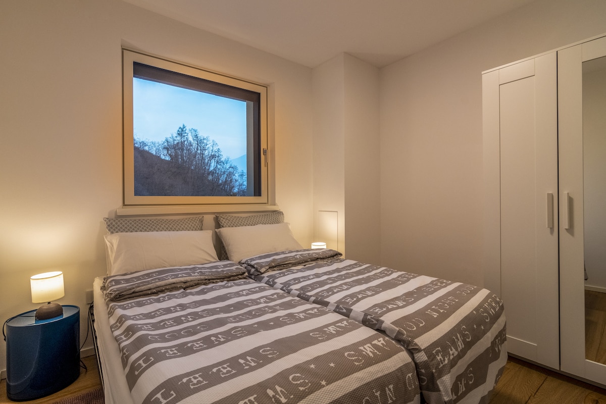 Appartamento con magnifica vista lago al piano rialzato di una villetta, completo di elettrodomestici, stoviglie, utensili, cucina e pentolame, lavastoviglie, lavatrice e prima pulizia. È ad un minuto da una bellissima spiaggia sul lago di Caldonazzo. Comprende accesso privato con possibilità di parcheggio macchina e terrazzo esterno con bbq. La casa è nuova e alcune finiture secondarie verranno via via ultimate.