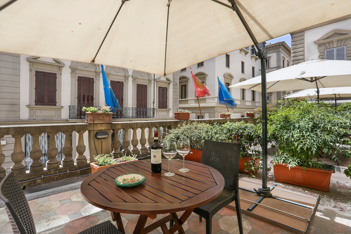 “Dante” - Immerse yourself in the essence of Florence at this refined 30 sqm studio, located on the first floor of a historic palazzo on Via dei Calzaiuoli, just steps from the majestic Duomo. A rare gem in the heart of the city, the private 35 sqm terrace offers a peaceful retreat with a table, umbrella, and chairs—perfect for open-air breakfasts, sunny lunches, or sunset aperitivos. Air conditioning, central heating, and elevator access ensure a stay of comfort and ease.