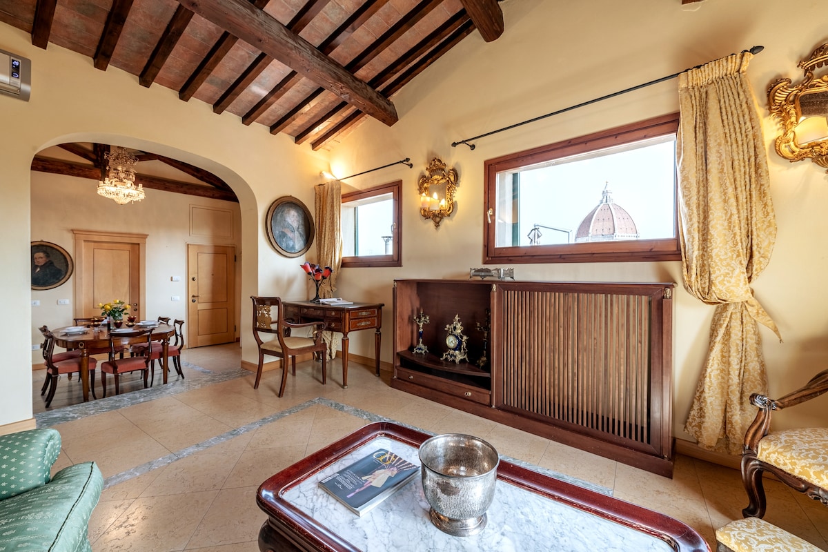 Make your stay unique and treat yourself to an experience that you will carry within you for a lifetime. Located in the heart of Florence, this awesome attic is the ideal solution for those looking for an exclusive and prestigious site to combine with a central location, which is perfect for easily visiting the main sites of interest. The apartment enjoys exclusive views of all the main monuments of Florence, with a terrace with breathtaking views