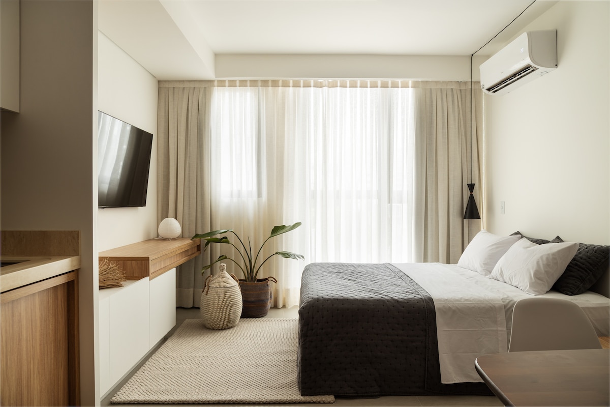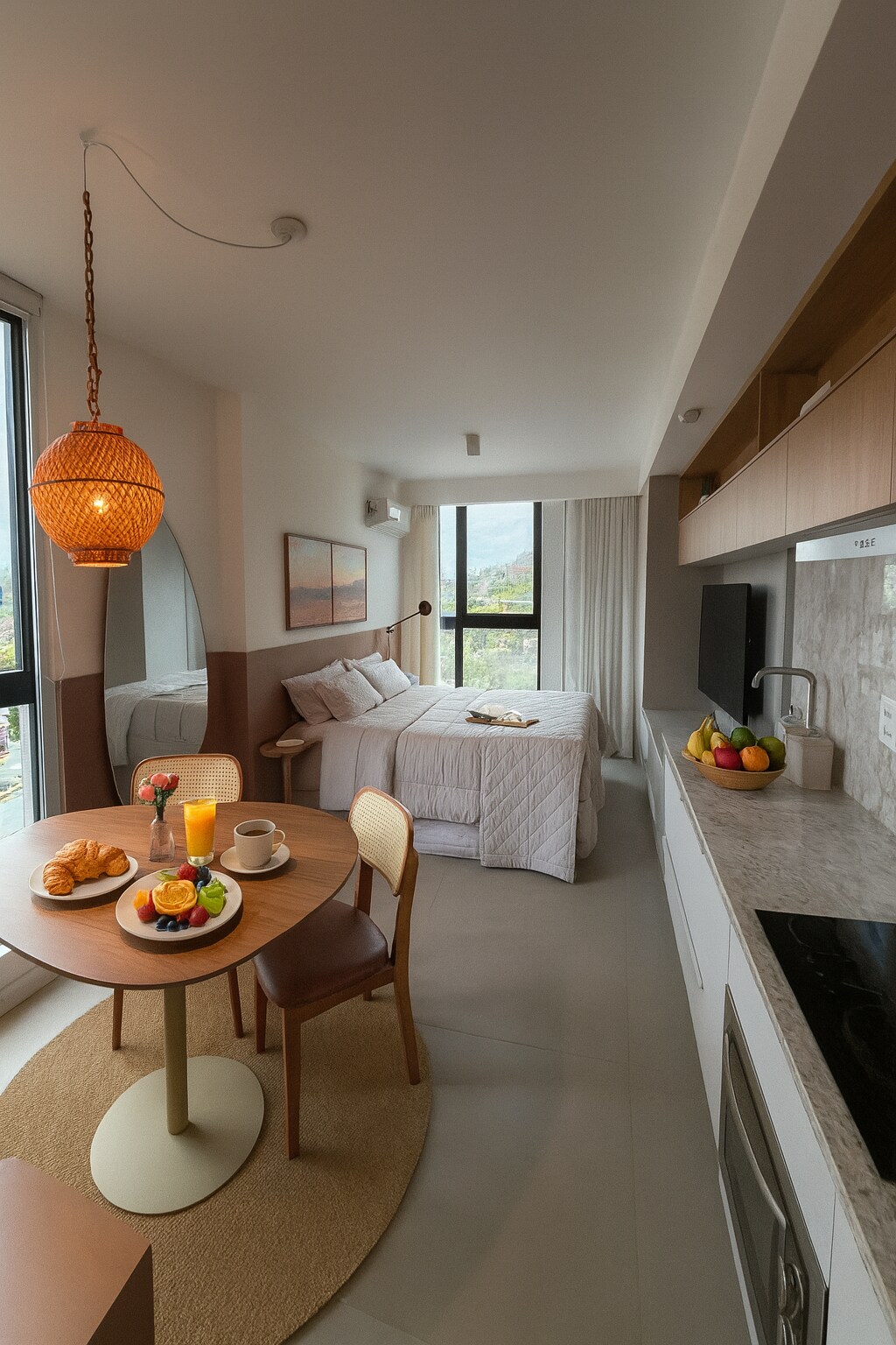 Studio novíssimo, decorado com móveis modernos, no Espaço Viva Trindade, Torre Apart, ao lado da UFSC, em frente ao Hospital Universitário e próximo ao Shopping Villa Romana. No empreendimento, o hóspede tem acesso a restaurantes, cafés e bares no Food Hall, além de um supermercado no andar térreo. Ideal para casais, estudantes, profissionais e famílias com um filho pequeno. Este lugar único tem um estilo aconchegante e acolhedor, para que o(s) hóspede(s) sinta(m)-se confortavelmente em casa.