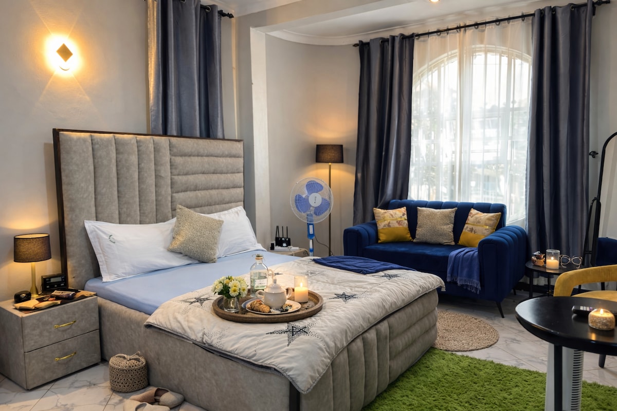 Enjoy a s10 minute drive from Ebb International airport we do airport transfers for $15, 48hr Solar Power backup, Unlimited free fast wifi, a patio to chill and enjoy the cool breeze from the lake, giant washer for those dirty cloth day, sought after space with modern furnishings, a sofa Bed, King size beds, well equipped kitchen, Hot and Cold Ensuite Bath and choice, conducive, calm, peaceful for work, holiday or solitude space and a stylish experience at this centrally-located place.