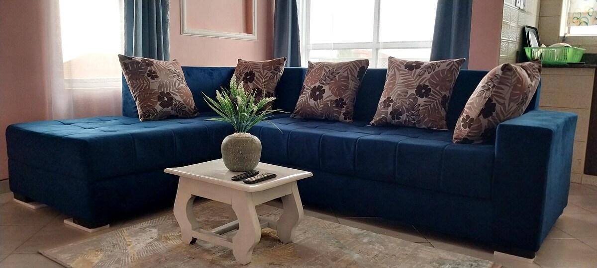 Cozy, private, modern, and absolutely stunning condo located in the heart of Najjera town with access to the city a few steps from the apartment. The space features an open concept layout, with modern tile finishes and antique designs for a comfy yet charming feel. This amenity filled condo offers convenience with a fully equipped kitchen, comfy queen bed, high speed Wi-Fi, workspace, smart TV, pool, gym and furnished patio for your relaxation. The condo offers tight security with 24/7 service.