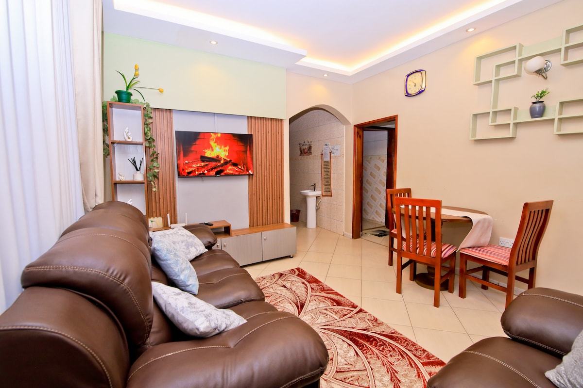 A beautiful two bedroom ground floor apartment that is conducive to host families and friends. Located in Naalya Estate, a few minutes drive to the northern bypass connection leading you to the Airport via Express Highway and close to Acacia Mall, nice restaurants & bars nearby. There are also a number of alternative routes to the city center. The amenities are; - All kitchen appliances eg. Rice cooker, blender, coffee machine - Fast Speed WI-FI - 55inch Samsung smart tv - Washing Machine