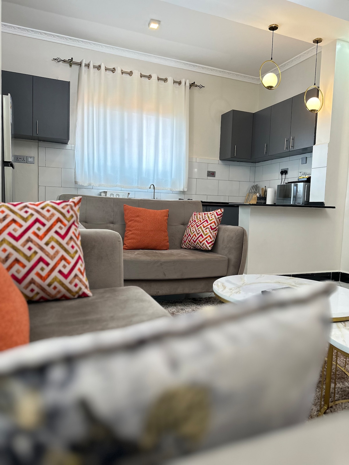 This Aesthetic One Bedroom Apartment is located in Naalya Estate near Quality Supermarket. It’s a few minutes drive to the northern bypass connection leading you to the Airport via Express Highway and close to Acacia Mall, nice restaurants and bars nearby. There are also a number of alternative routes to the city center. The amenities are; - All kitchen appliances eg. Rice cooker, Coffee machine, Blender - Fast Speed WI-FI - 55inch Samsung smart tv - Samsung sound bar - Washing Machine